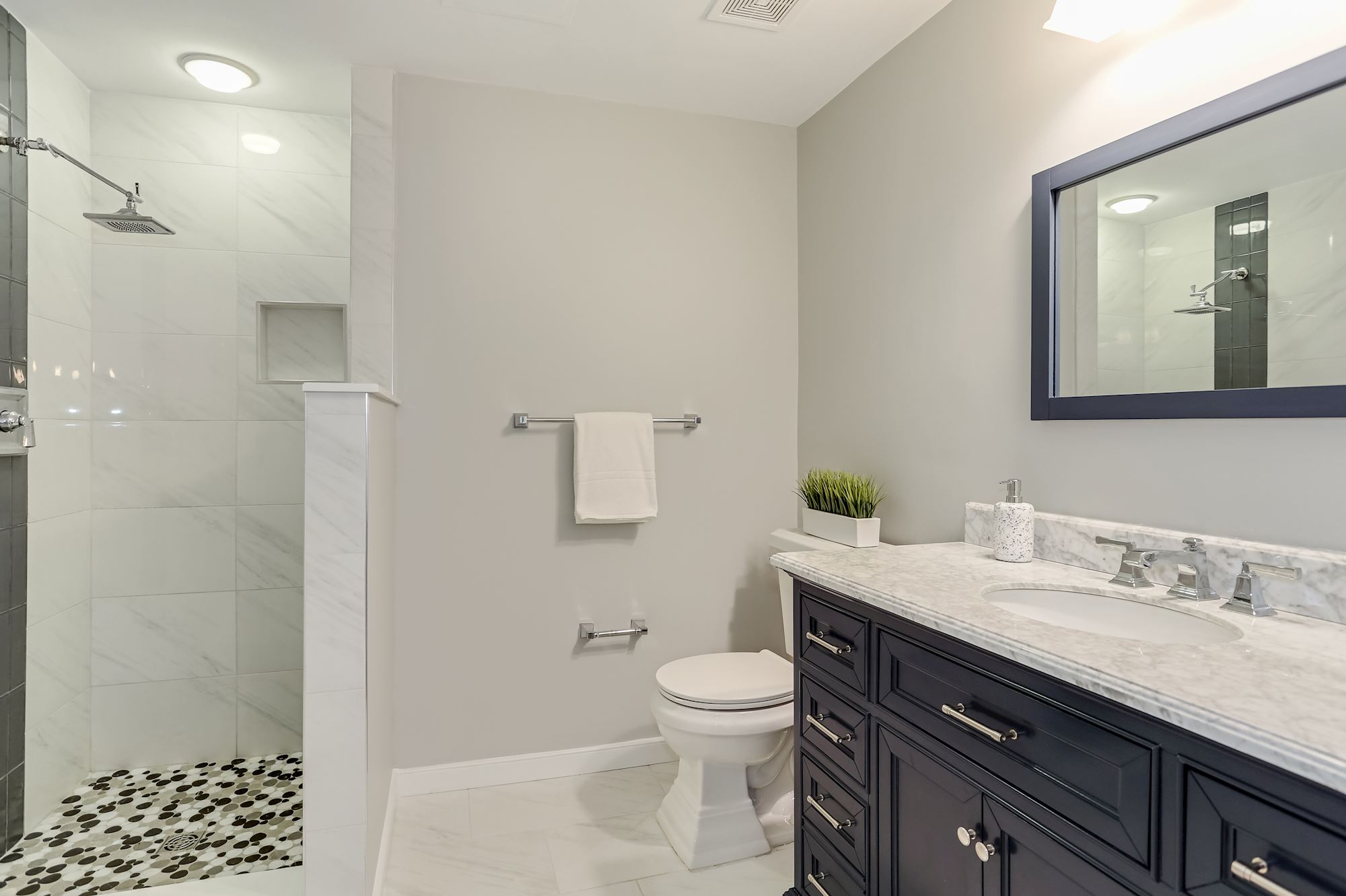 Hardwood floors extend into the owner’s suite has windows facing east, a ceiling fan, and a gorgeously updated en-suite bath featuring a shower with a mosaic stone tile floor, updated fixtures and tile shower surround, and an oversized dark blue vanity with quartz counters. The unit includes a washer/dryer and one secure garage parking space #129 on B1. Live in luxury and enjoy Liberty Center’s high-end amenities, including a rooftop deck that includes views of the monument & Potomac, a rooftop pool & fitness center, a community room, and a 24-hour concierge. Liberty Center is located just steps from the metro, the Ballston Quarter Mall, jogging trails, tons of great dining options, and more.
