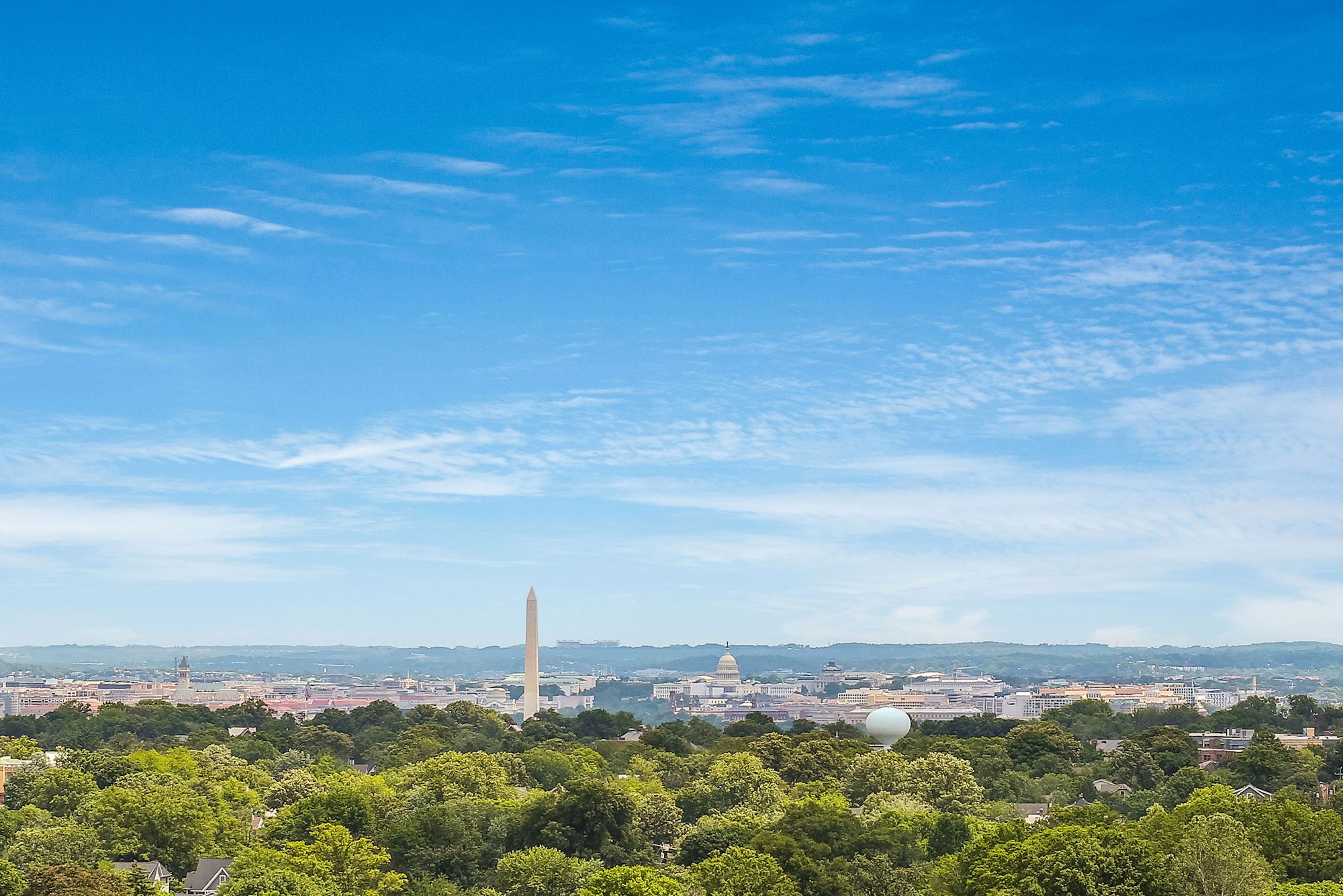 The open living & dining room with beautiful oak hardwood floors is large enough to have a true dining table and features a unique curved wall of floor-to-ceiling windows with top of the monument views. Yes, you can watch the 4th of July fireworks from the comfort of your living room! The Owner’s Suite has a generous walk-in closet, a 2nd closet, & an en-suite bath with dual vanities, a stand-up shower, and a separate soaking tub.