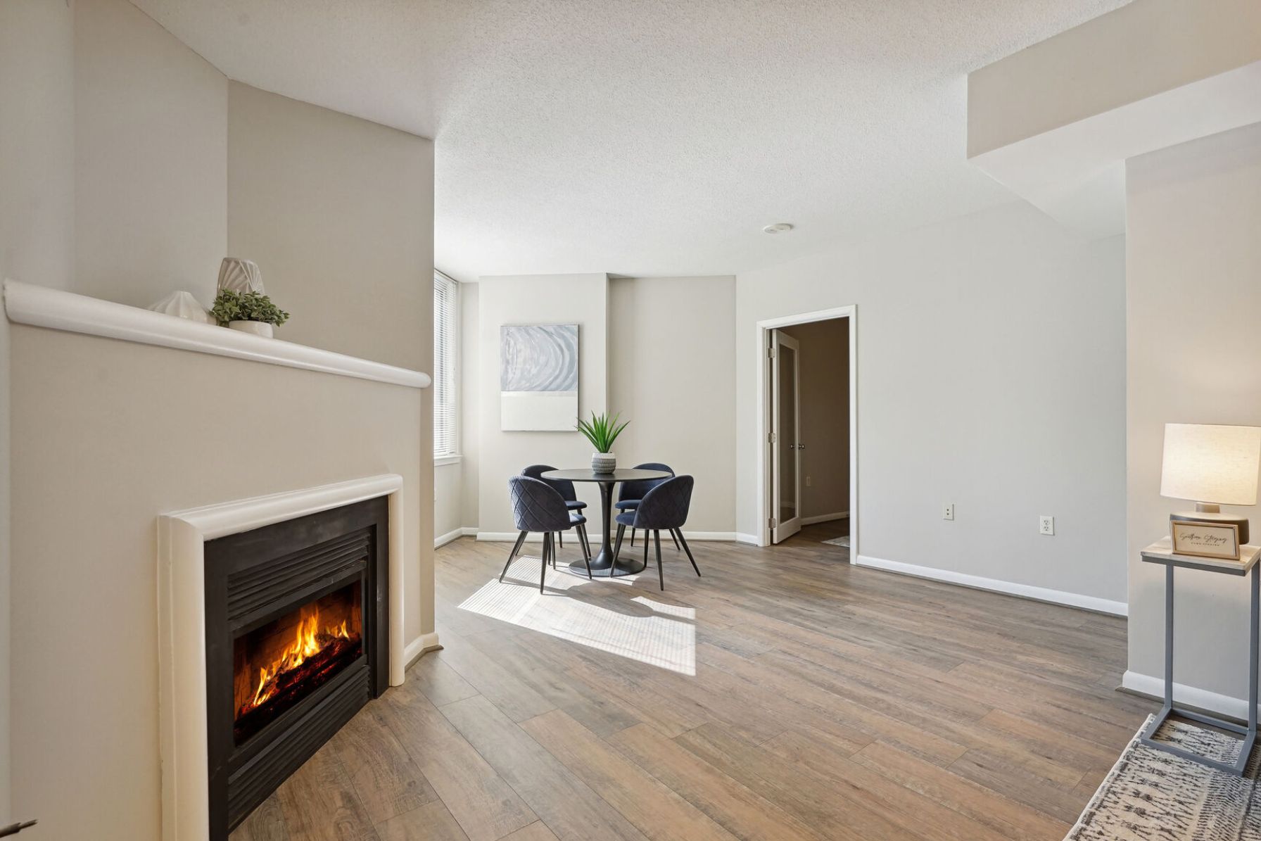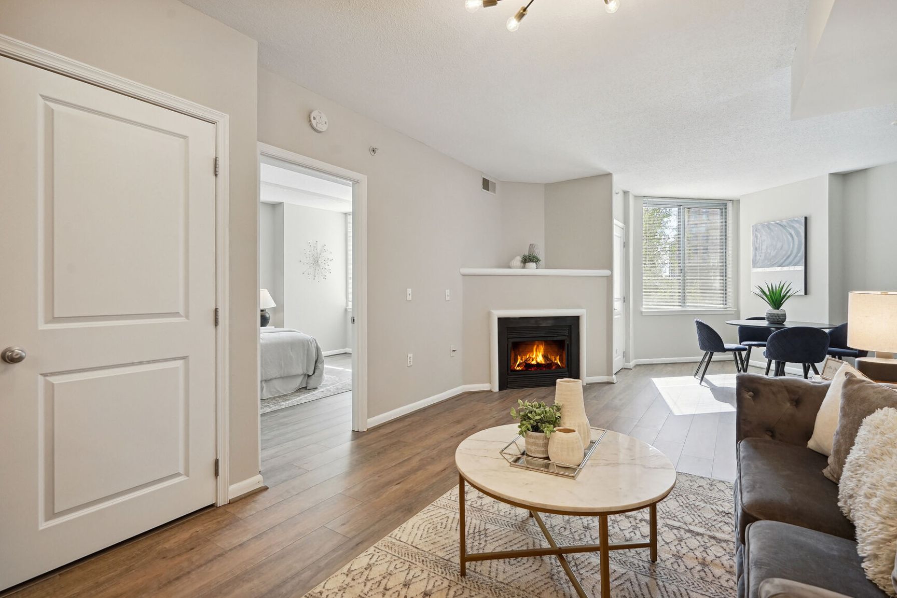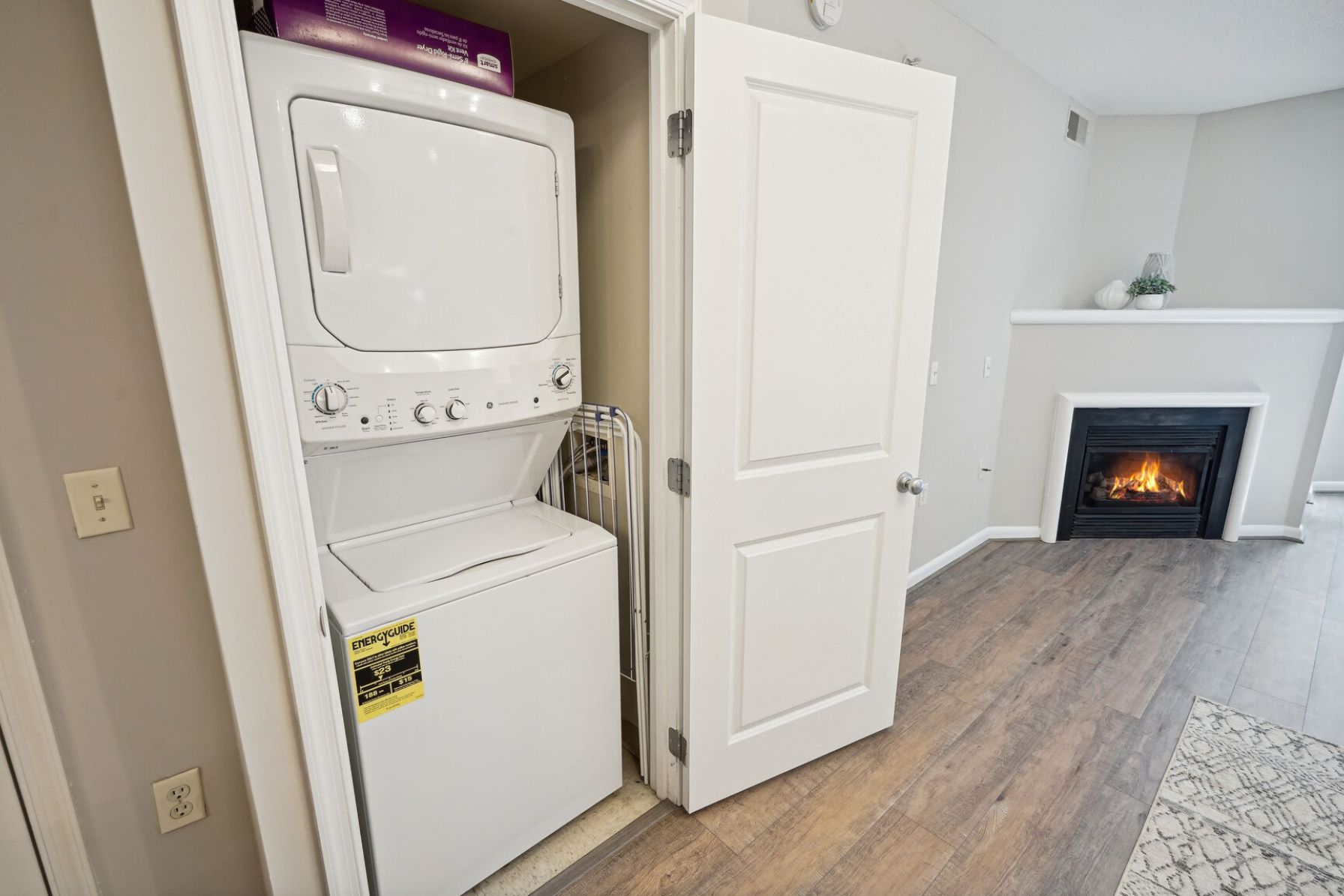 The condo, complete with an oversized parking garage right in front of the garage building entrance. Home offers a gas fireplace, new installed vinyl wood flooring, new washer and dryer (2019), new light fixtures, and a new toilet, as well as being painted throughout. Located on the 3rd floor facing the wonderful courtyard, this open plan home is illuminated with plenty of natural light.