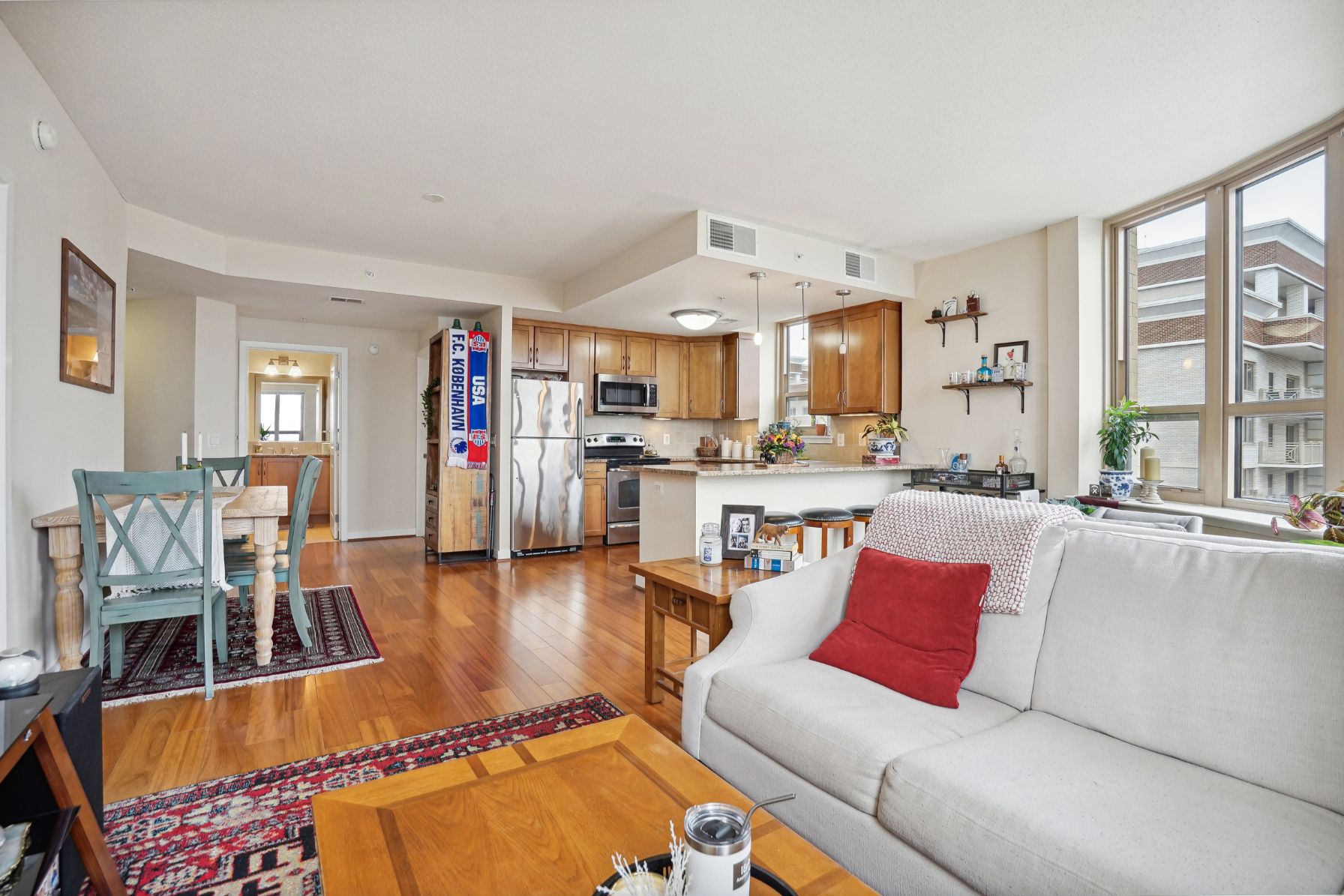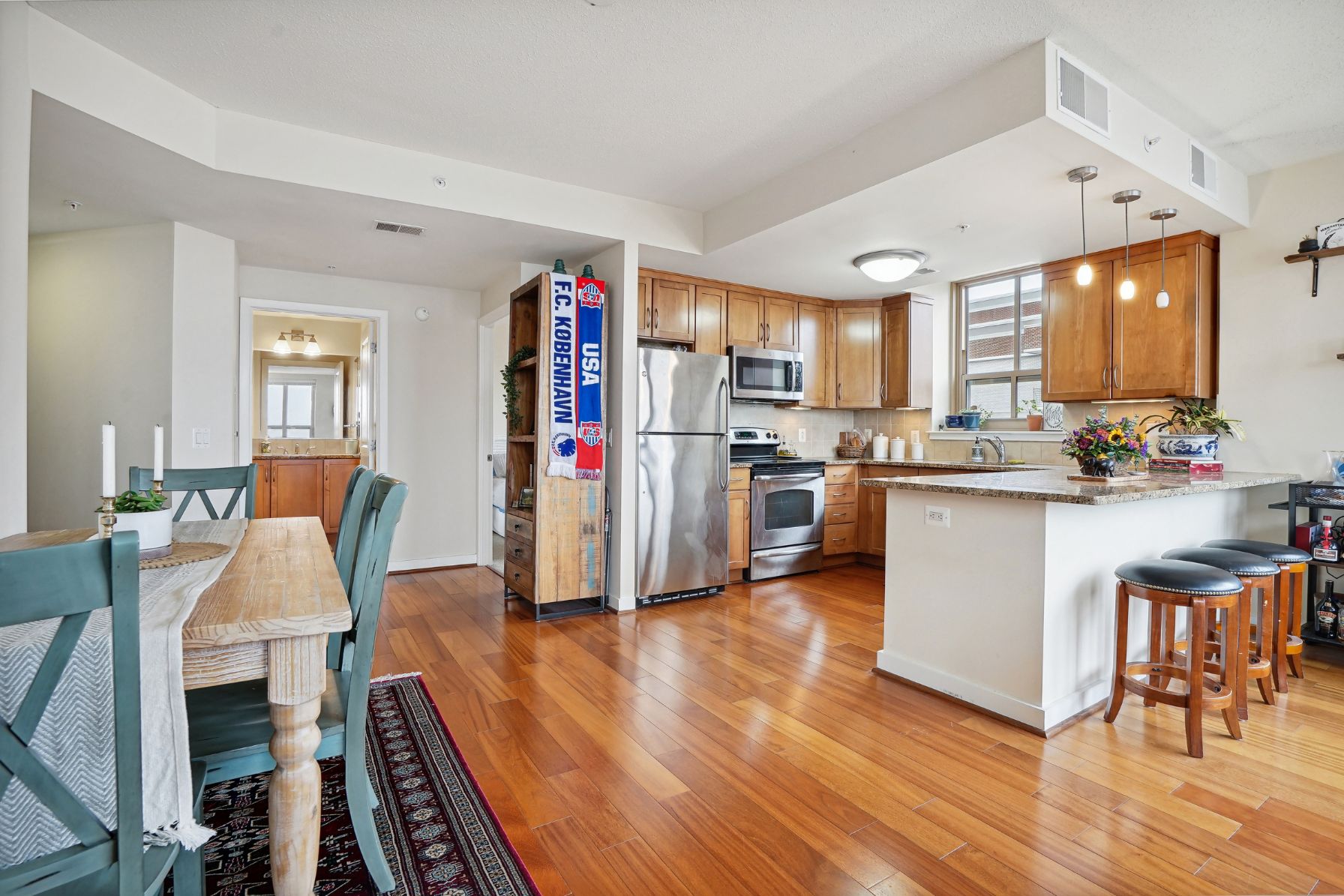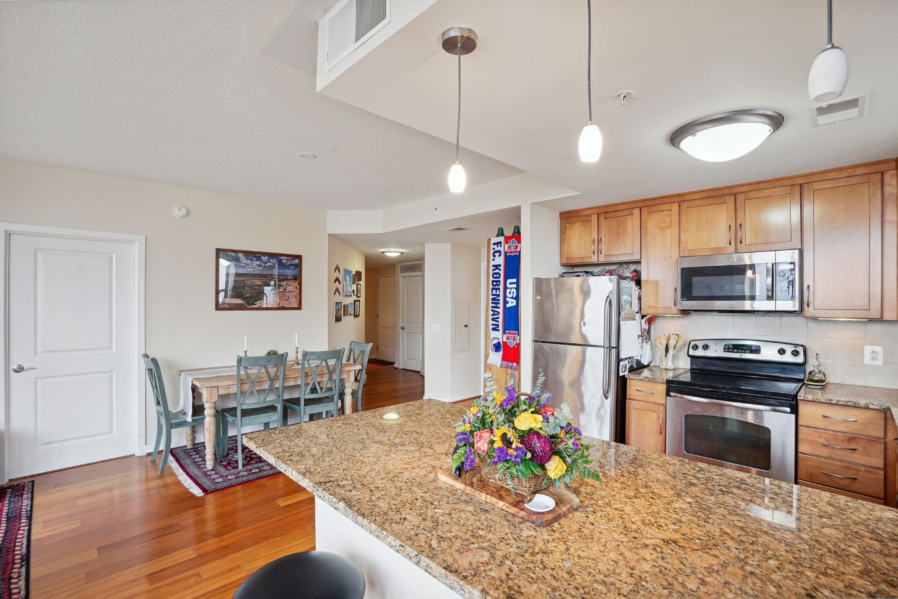 This is your rare chance to own an 18th floor Franklin model with panoramic DC views at the Residences at Liberty Center. Open the door to a curved hall entry that opens to a light, bright, and open floor plan. Hardwood floors expand throughout the living space including the kitchen with granite counters, stainless steel appliances, and a breakfast bar accented by pendant lighting. The unique living/dining room has a curved wall of windows with eastern exposure with monument views.
