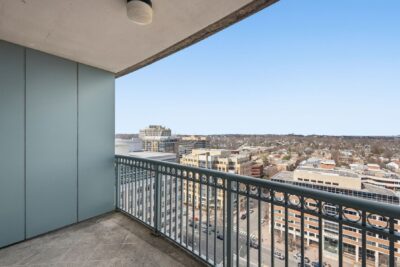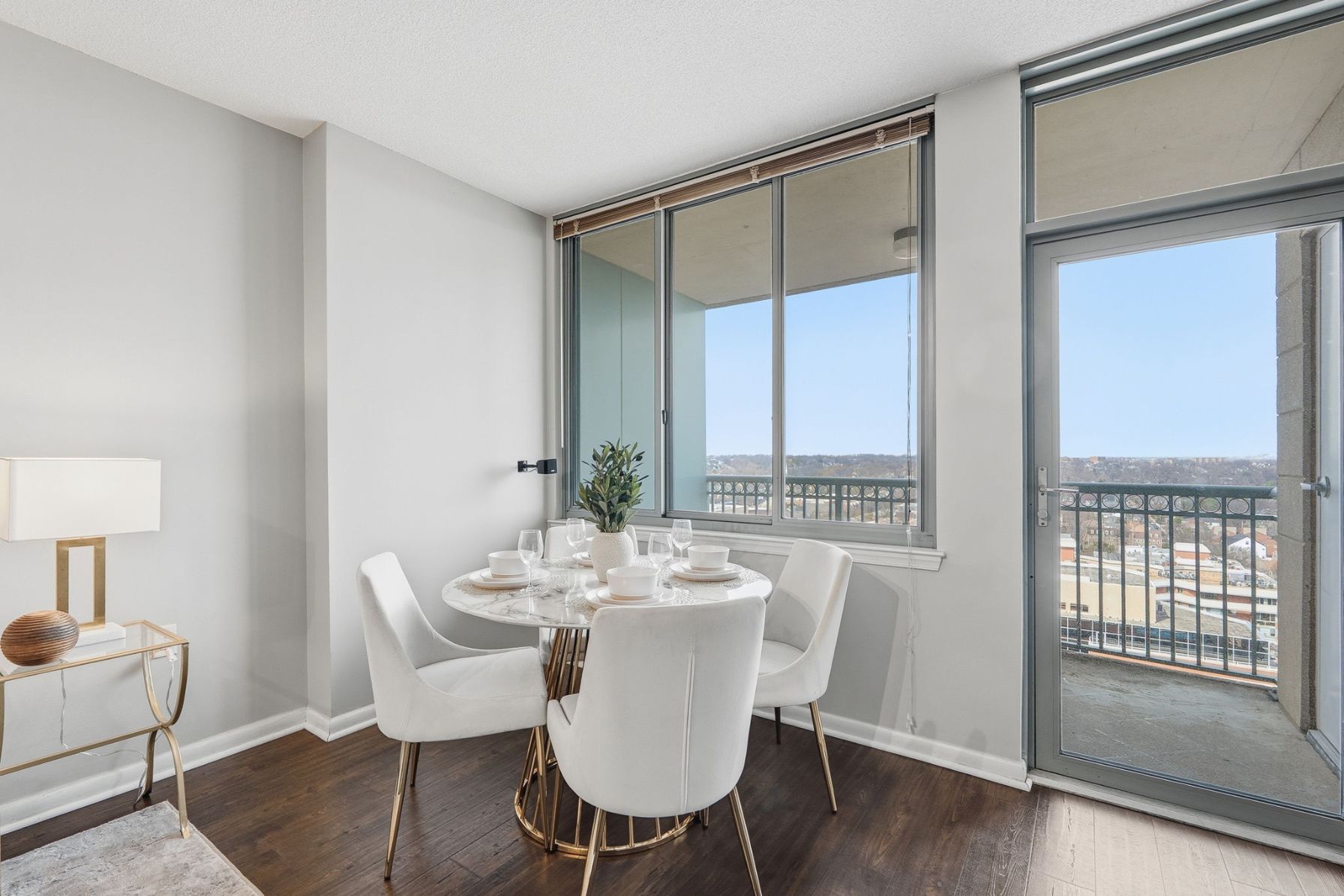 through the home throughout the day, while the private balcony offers a front-row seat to stunning sunsets and sparkling city lights at night.