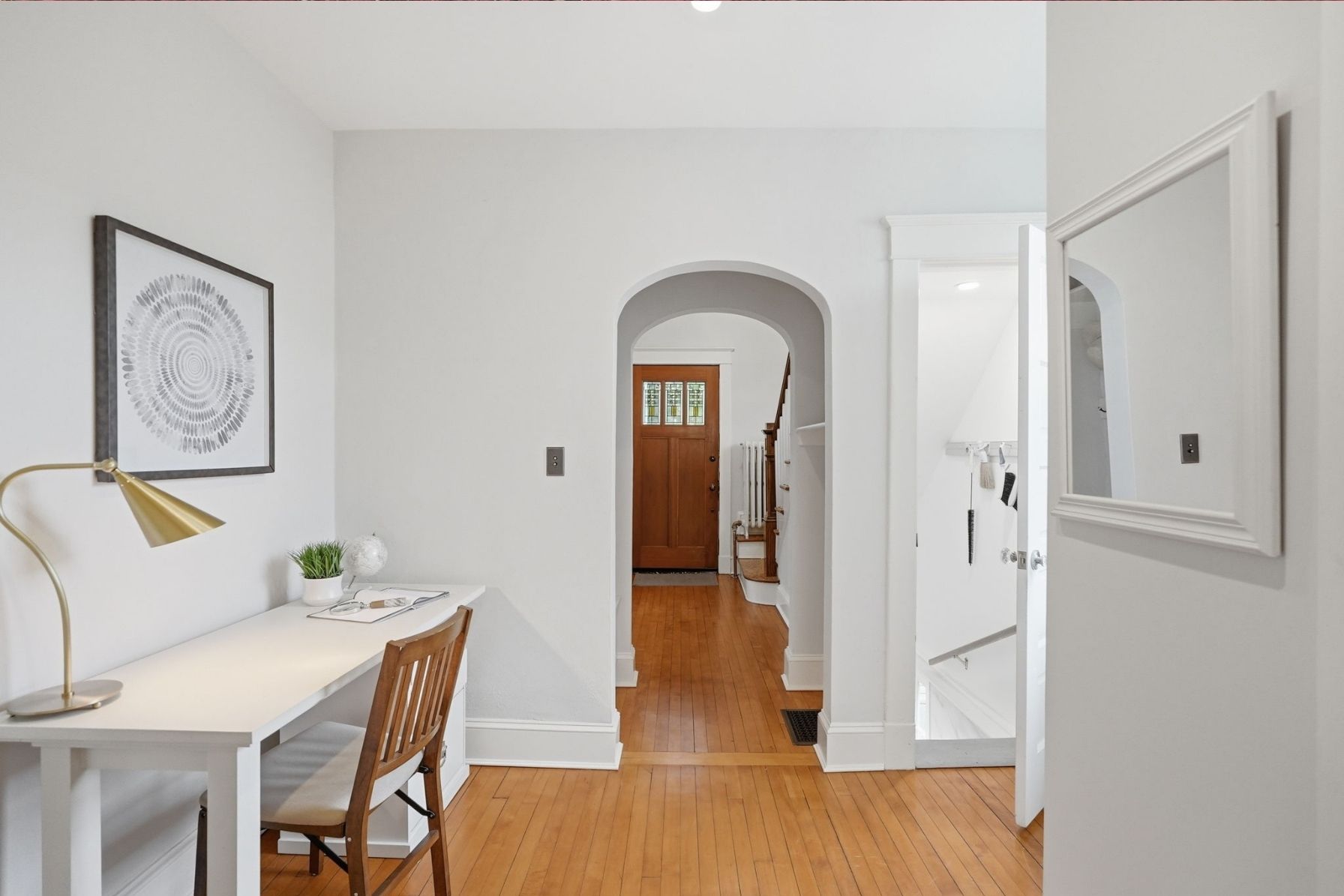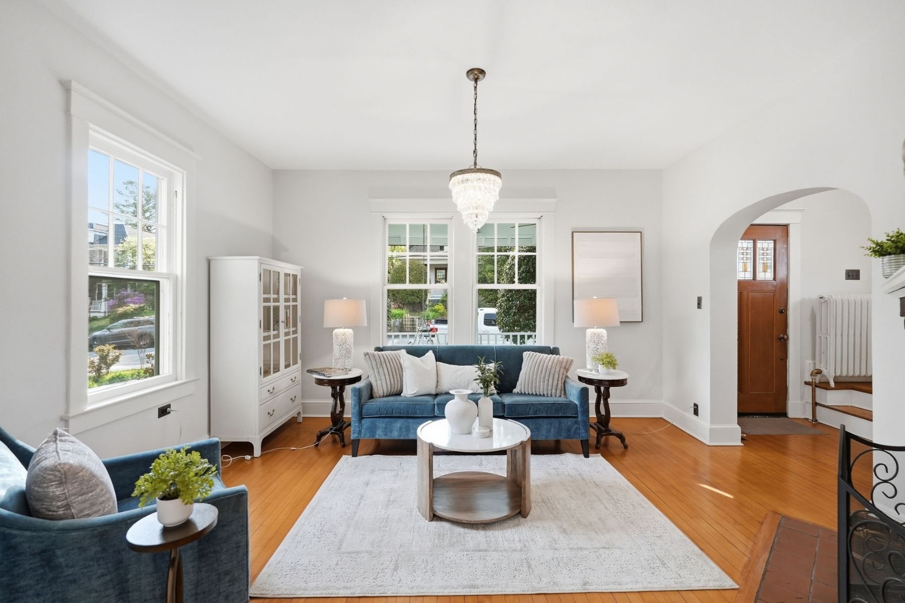 Step inside to a welcoming foyer where original details immediately set the tone with warm maple hardwood floors and Arlington-classic arched openings that create a natural flow throughout the home.