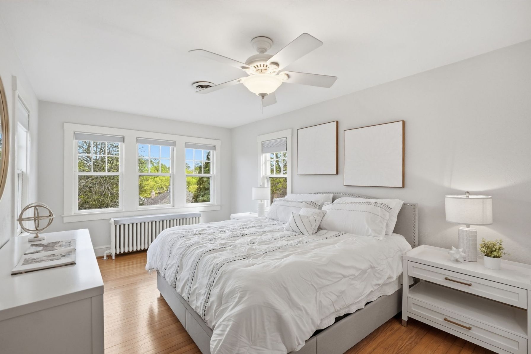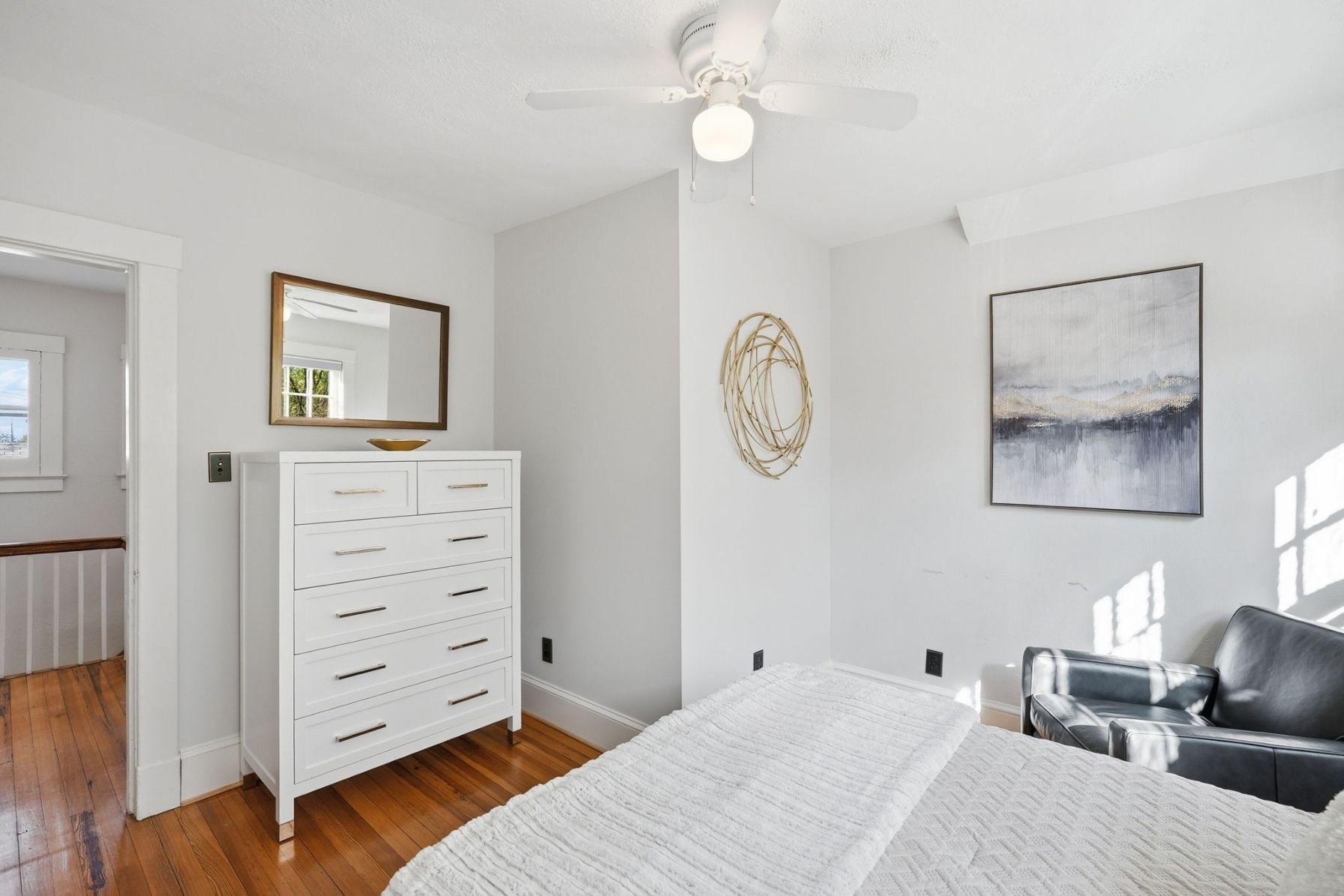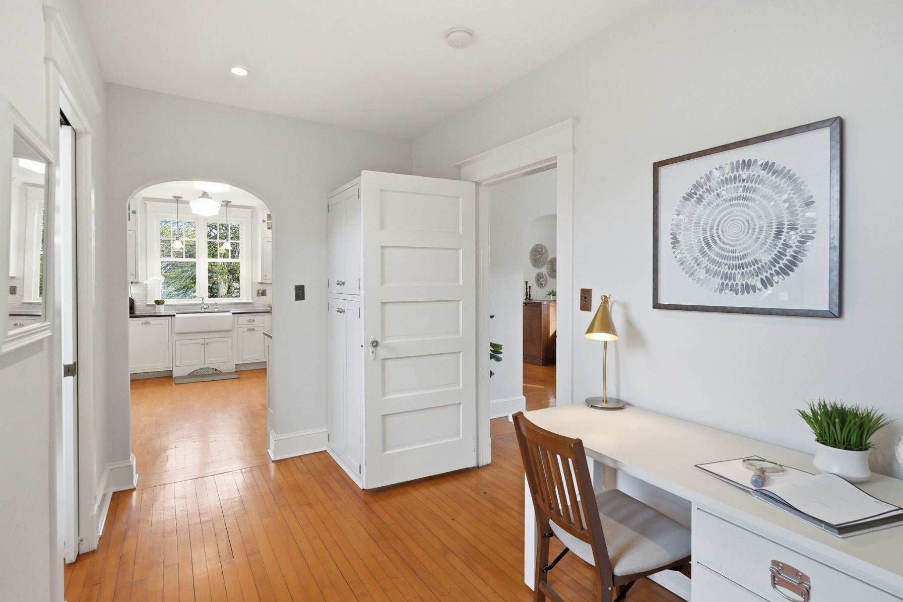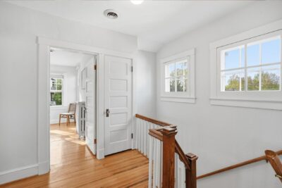 The same warm maple flooring continues throughout the upper level, enhancing the home’s cohesive feel and historic character.
