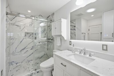 • Glass shower, ceramic tile & walk-in closet