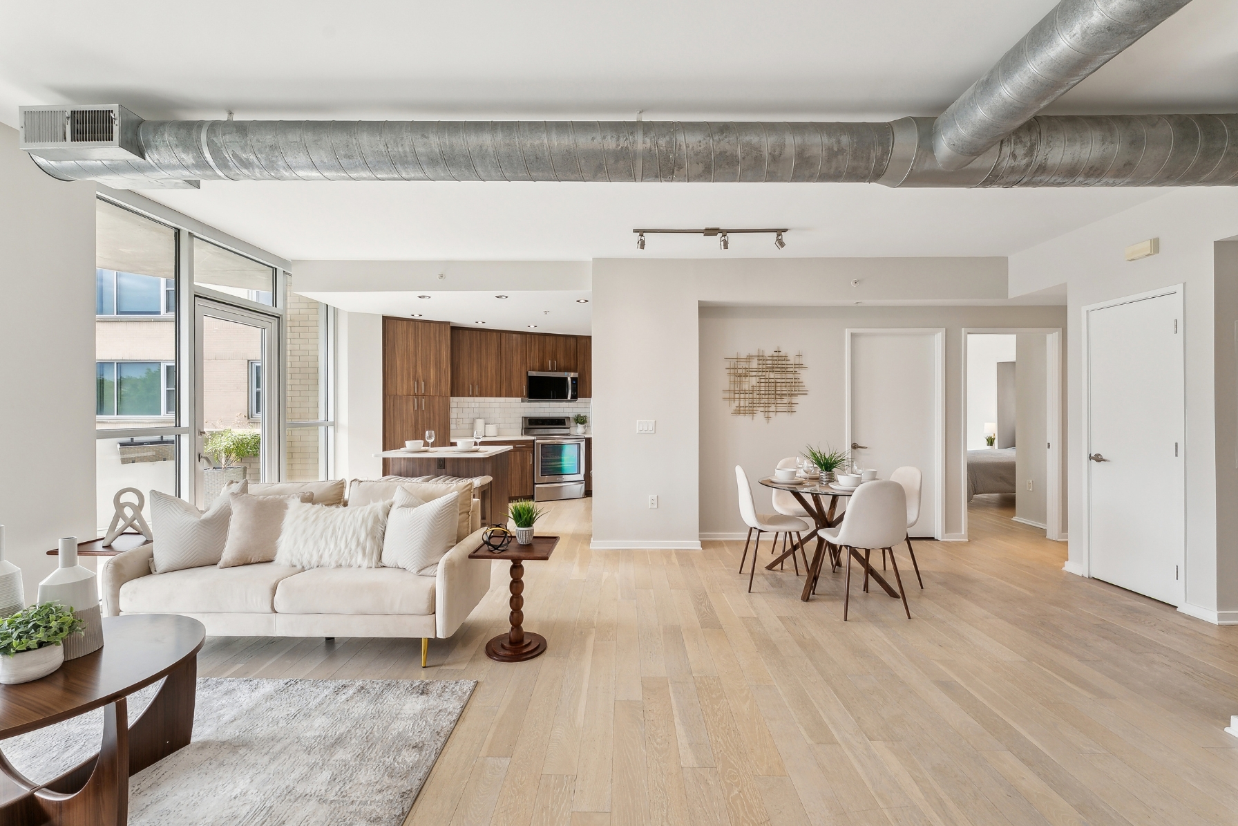 Welcome to ARC 3409, where modern style meets an amazing location just a few blocks from both the Virginia Square and Clarendon Metro stations. This spacious 1,110 square foot condo offers an open, light-filled layout with striking industrial touches, including high concrete ceilings, exposed ductwork, recessed lighting, and a full wall of floor-to-ceiling windows that opens to a huge private terrace.