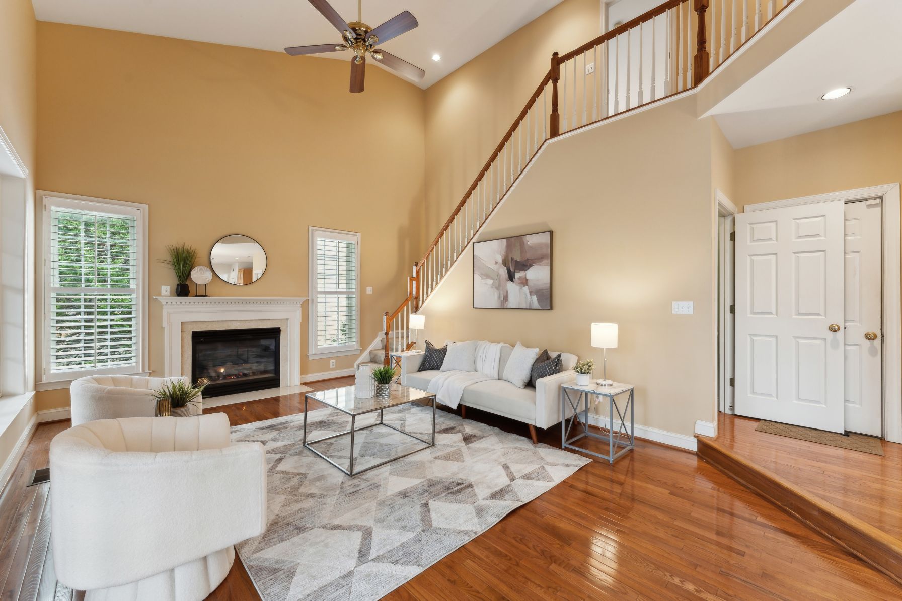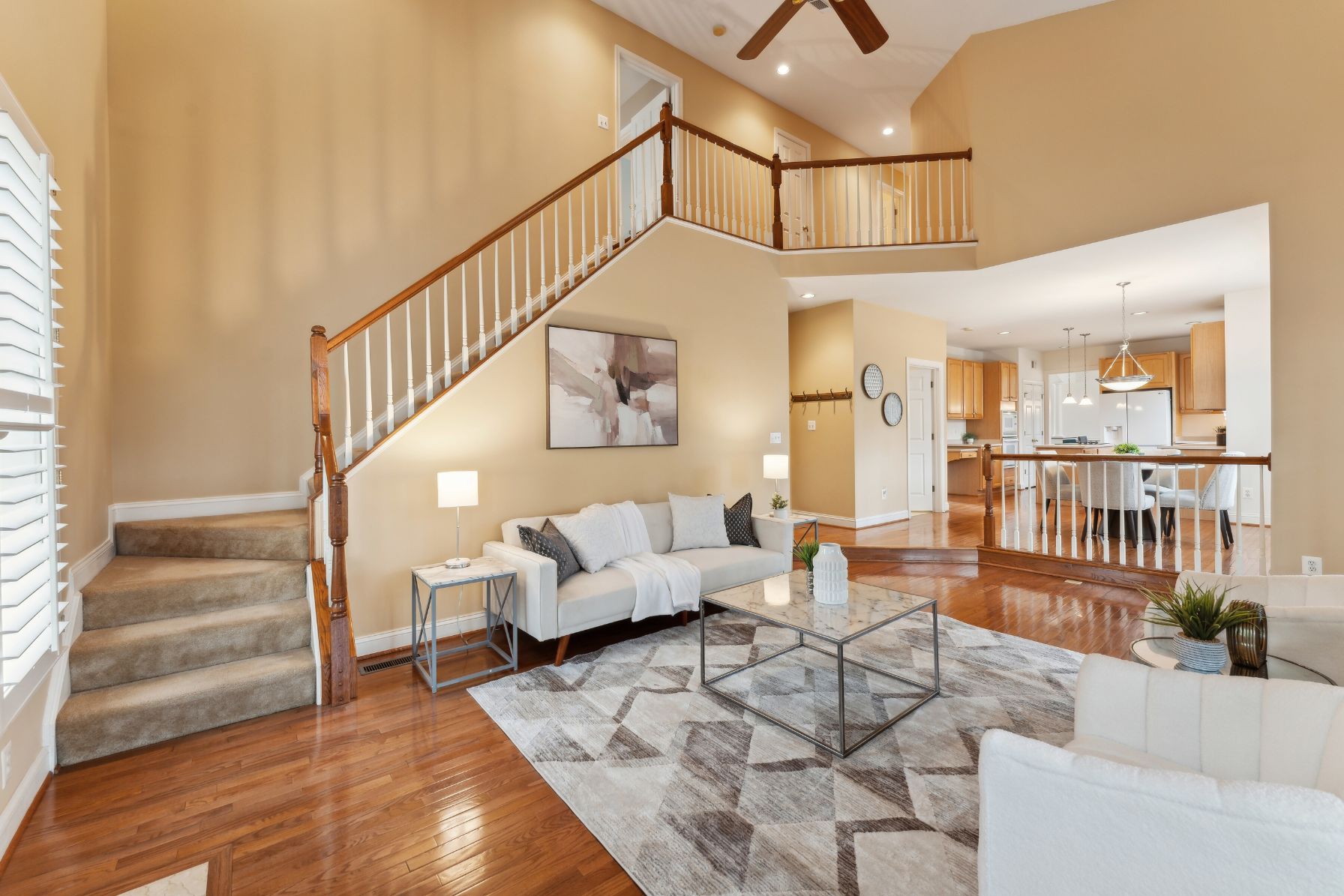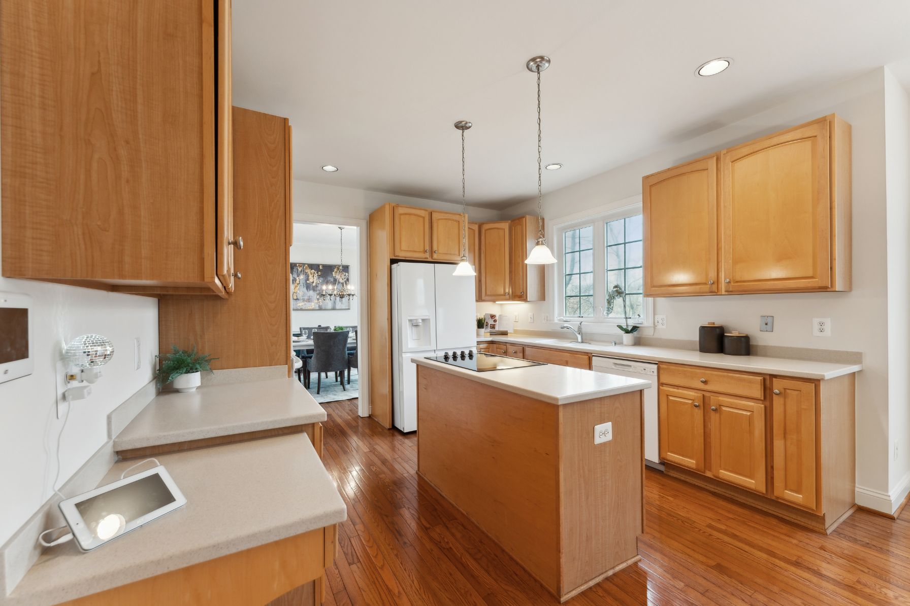 Step through the front door into a grand two-story foyer, where oak hardwood floors span the entire main level. The spacious eat-in kitchen features classic oak cabinetry, Corian countertops, a center island with an electric cooktop, and a bright breakfast area framed by bay windows overlooking the expansive backyard. The kitchen seamlessly flows into the breathtaking two-story family room, complete with a cozy gas fireplace and doors leading to a huge screened-in porch—the perfect spot to enjoy your morning coffee while soaking in the sights and sounds of nature.