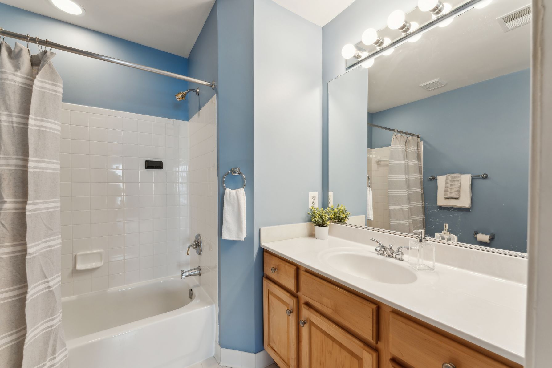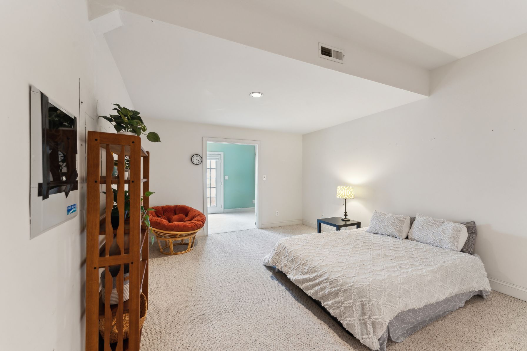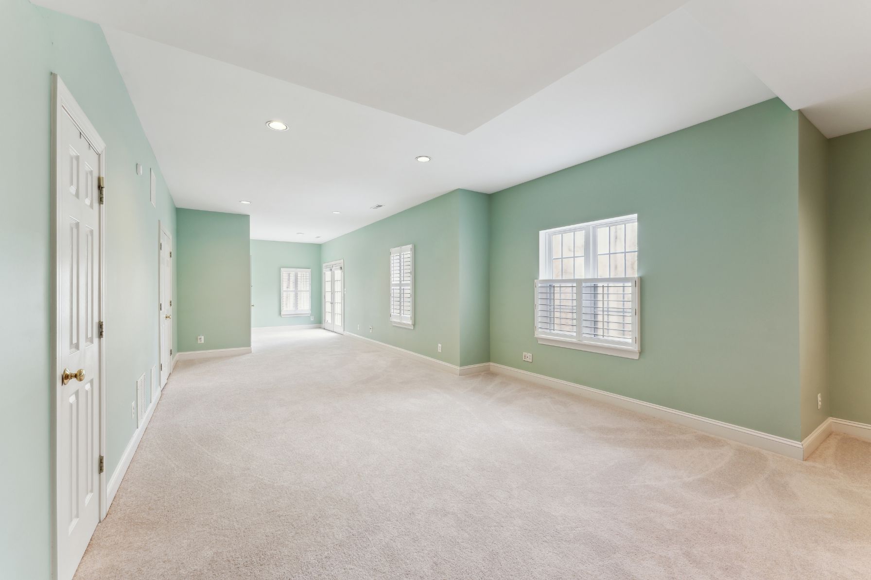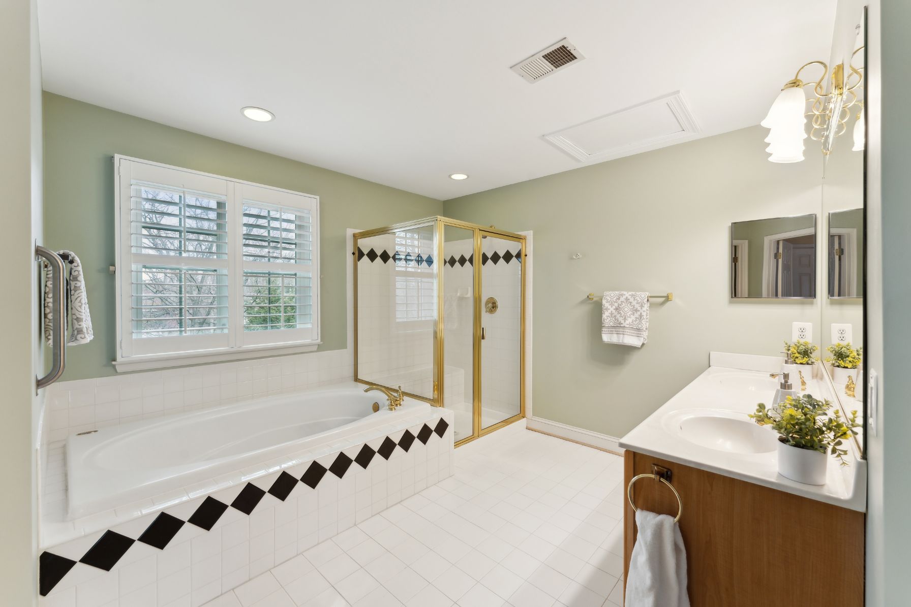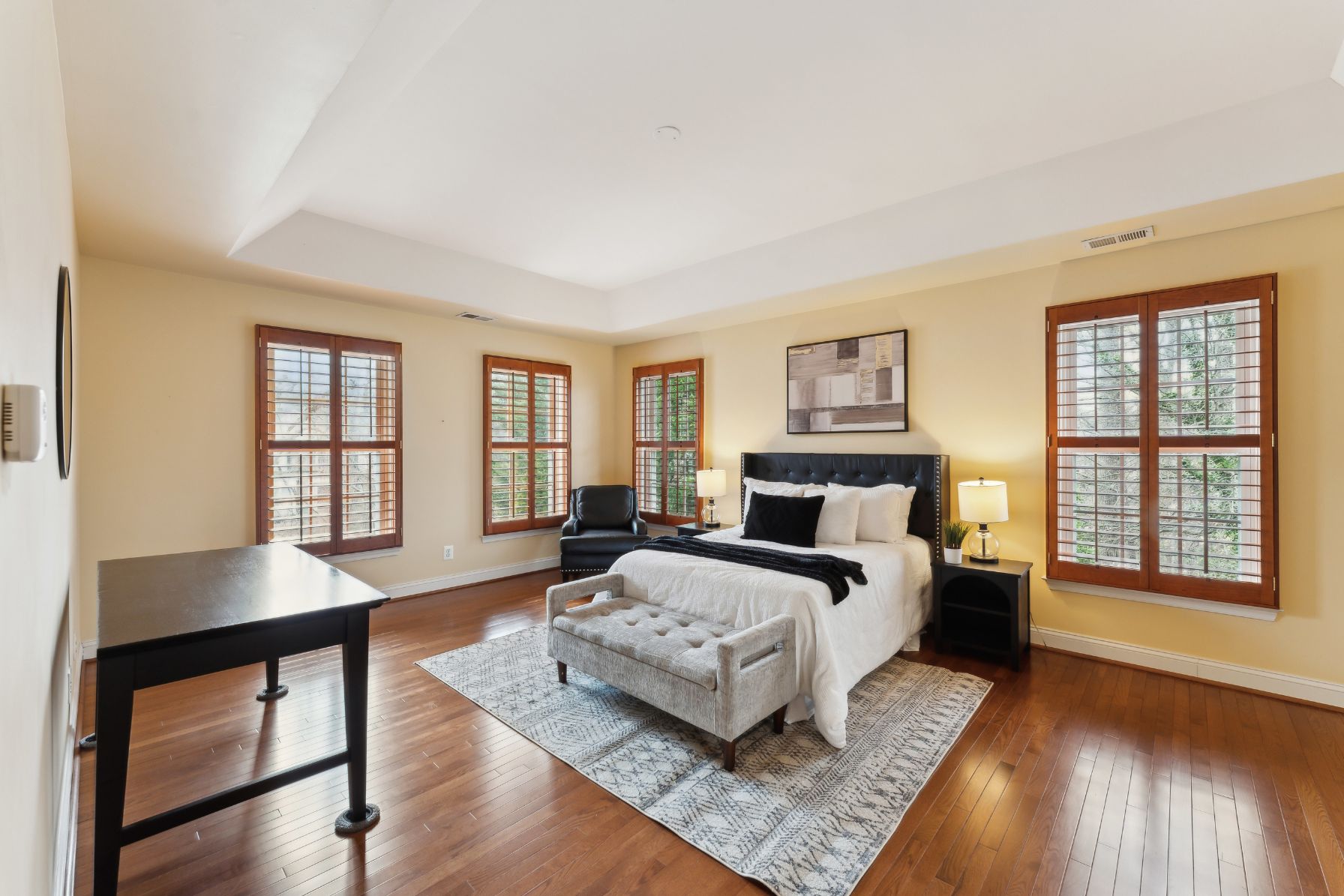 Two staircases lead to the bedroom level, where you’ll find four spacious bedrooms and three full bathrooms. The luxurious owner’s suite features hardwood floors, an oversized walk-in closet, and a spa-like private bath with a jetted soaking tub, separate shower, and dual-sink vanity.