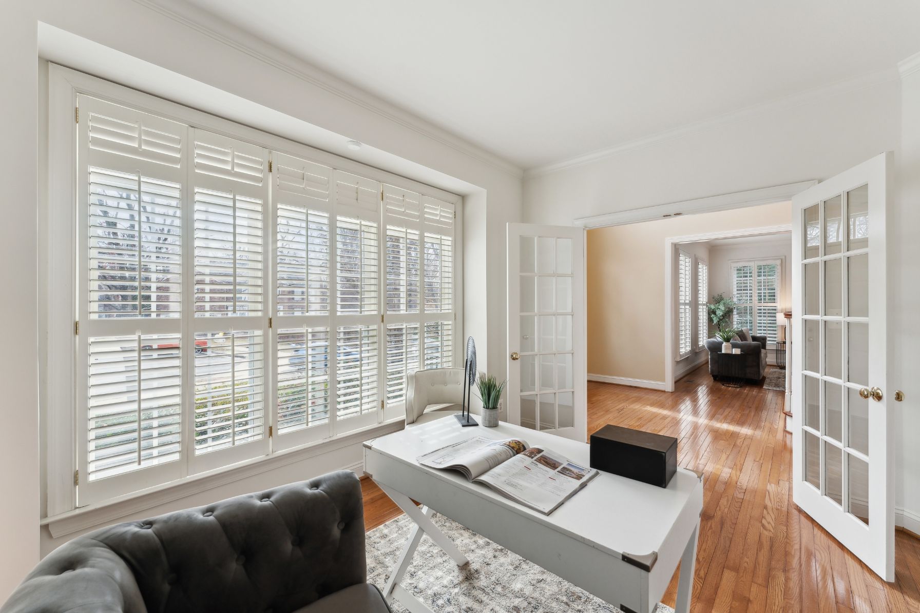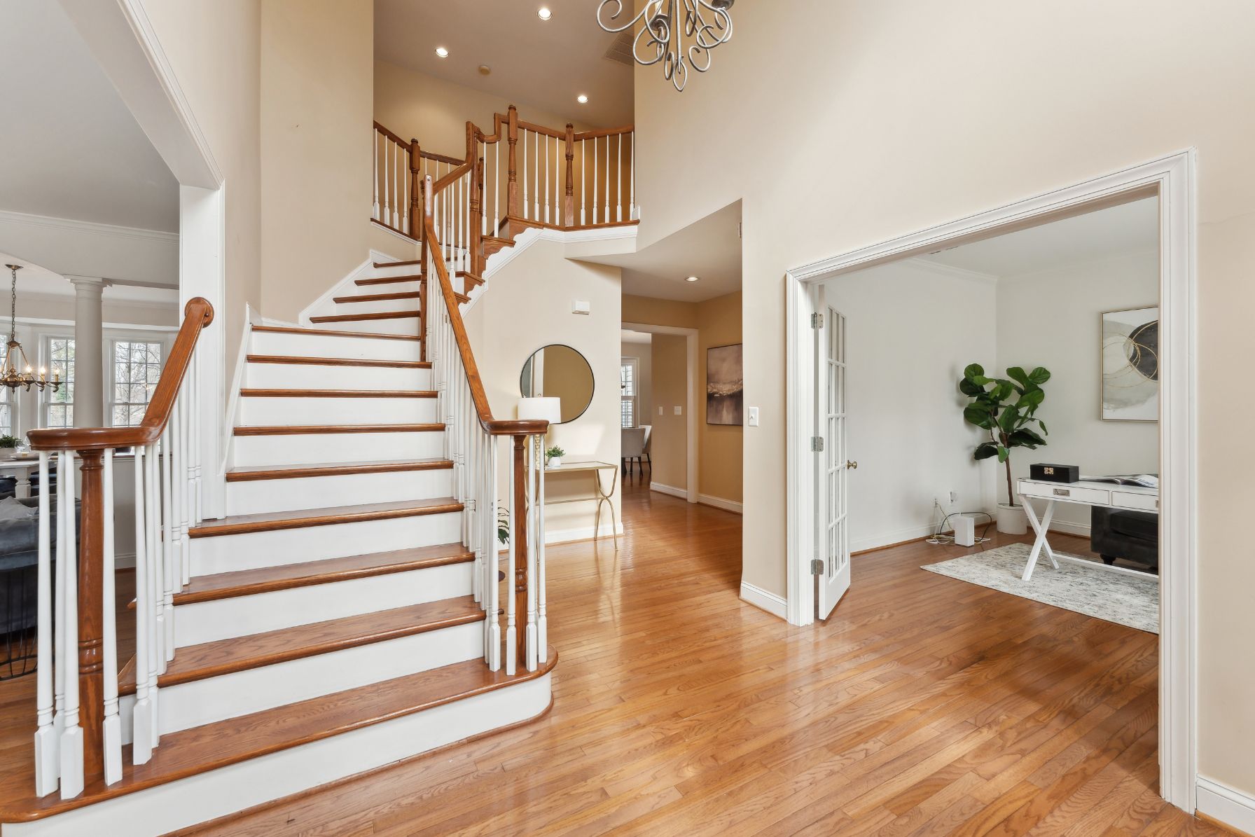 The main level also offers a formal dining room that opens to a sun-drenched living room, ideal for entertaining. A private home office/study provides a quiet space for remote work.