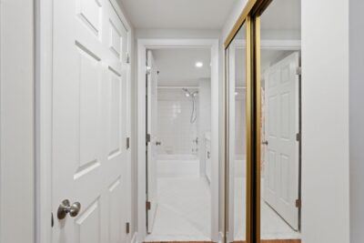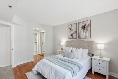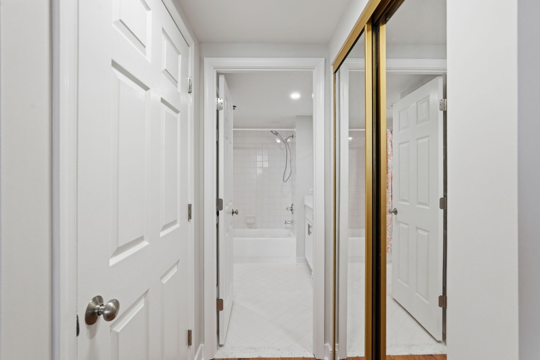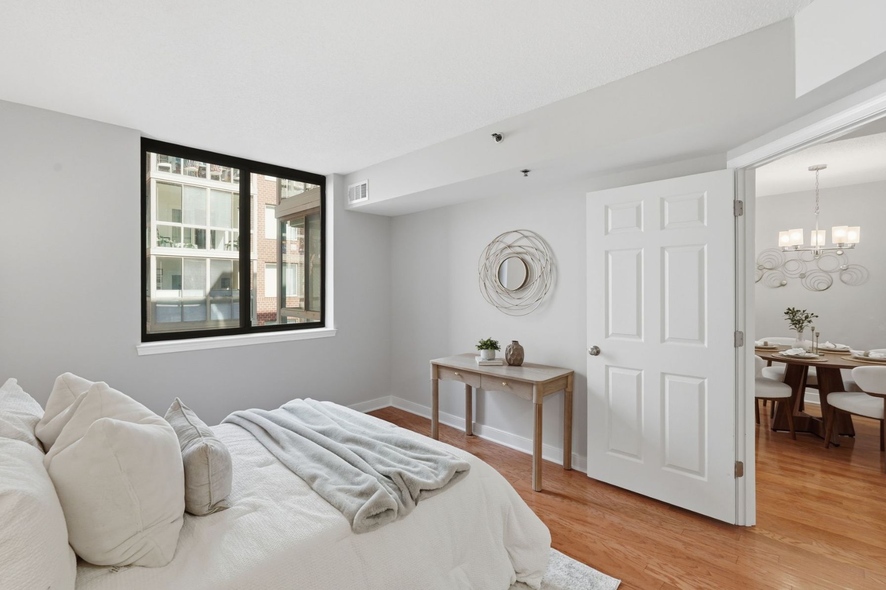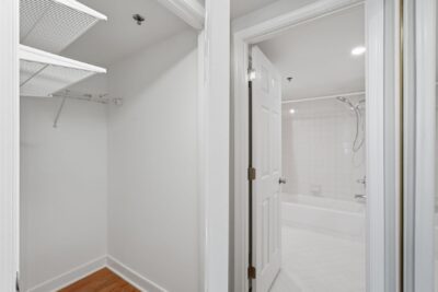 The spacious bedroom also features hardwood flooring and generous closet space, including a walk-in and secondary closet, while the overall layout offers an easy, livable flow.