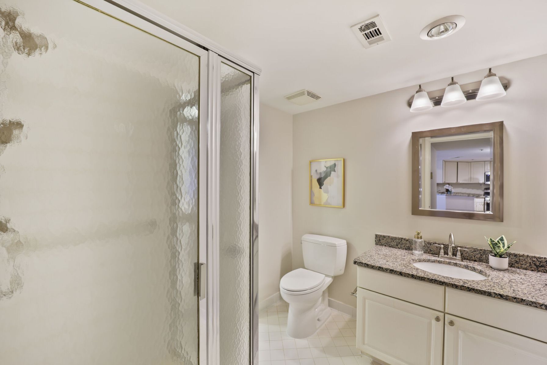 The spacious owner’s suite includes a large walk-in closet, a private sunroom perfect for a home office or reading nook, and a renovated en-suite bath featuring a soaking tub/shower combo and a dual-sink vanity with brand new quartz countertops, sinks, and fixtures. The second bedroom, situated on the opposite side of the condo for added privacy, offers two closets and access to a dual-entry bath with a glass-enclosed shower. A premium, garage parking space is also included.