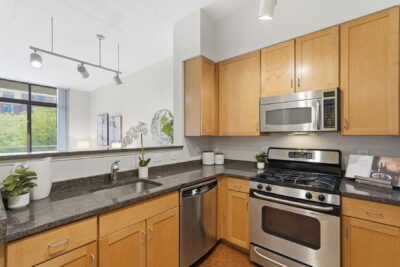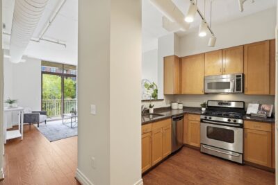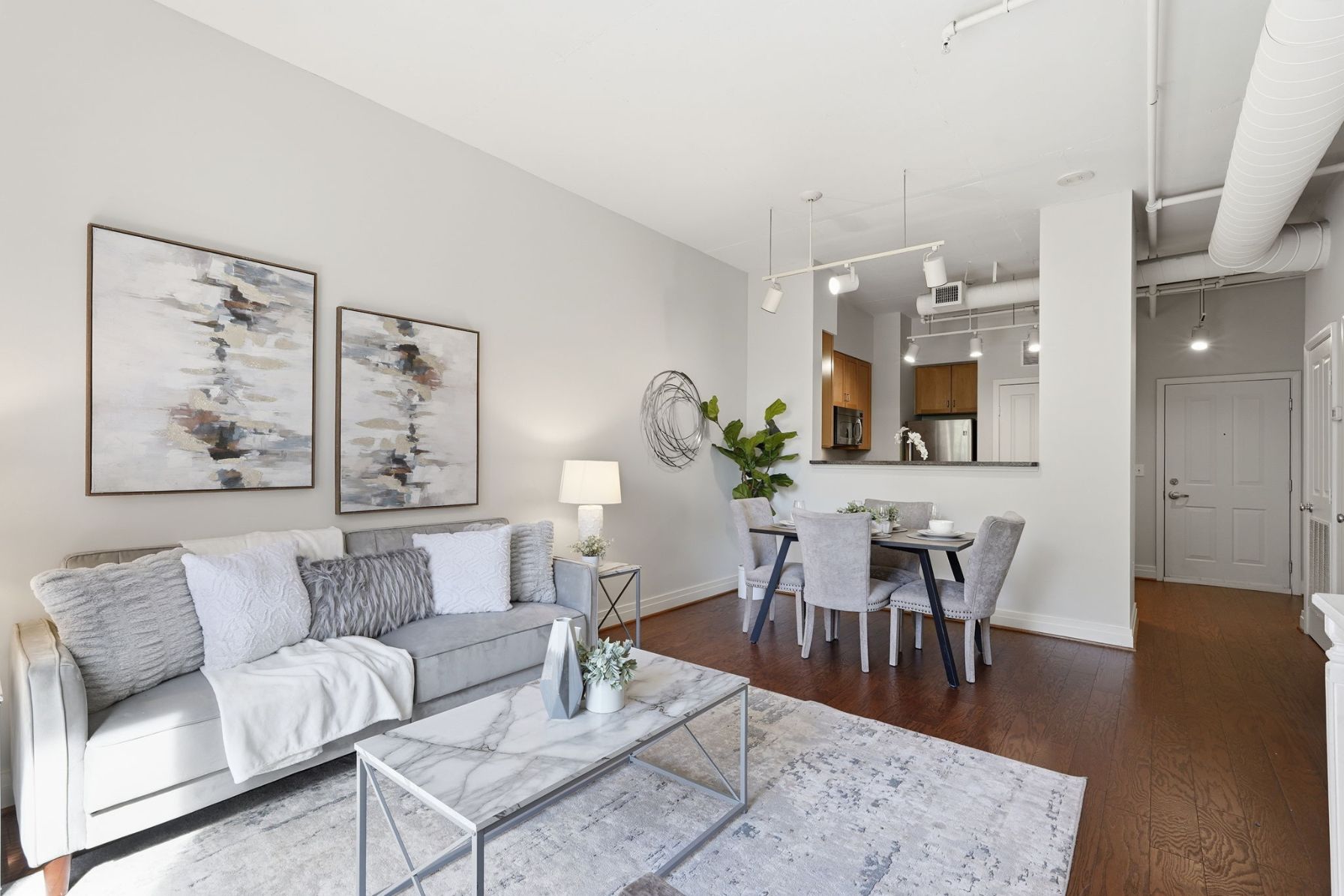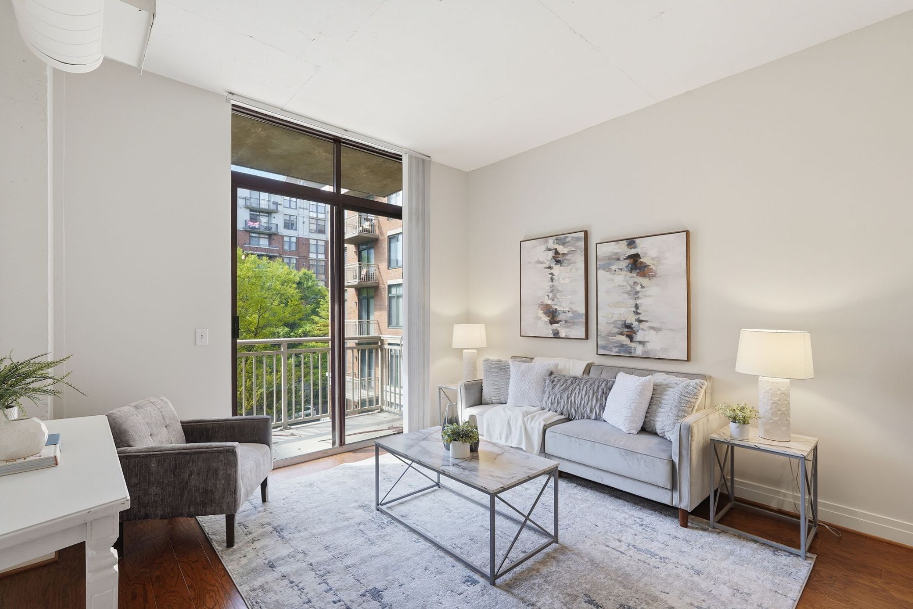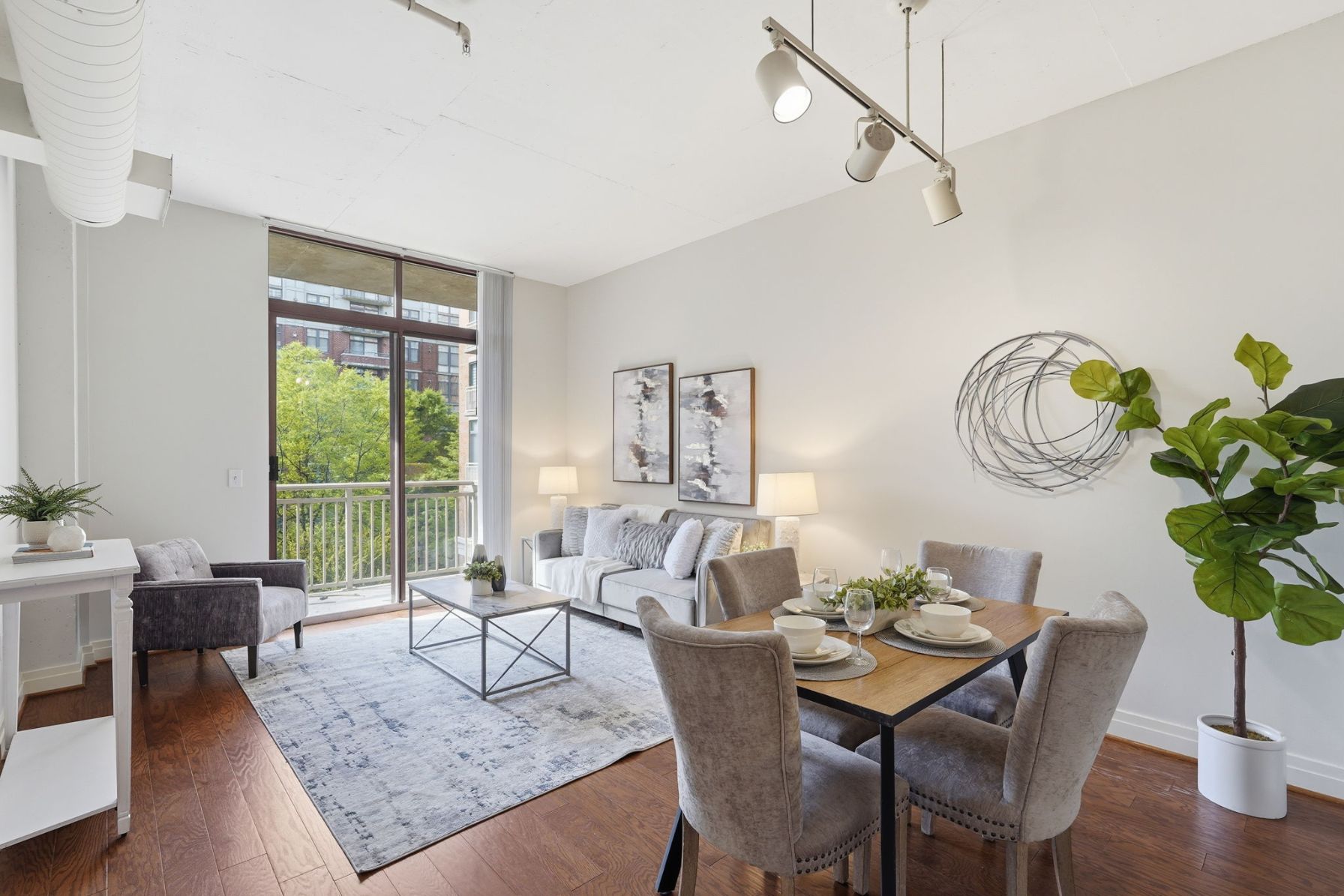 Welcome to Unit 401 at the Residences at Station Square, a beautifully updated loft-style one-bedroom in the heart of Clarendon, where modern comfort meets industrial-chic design.