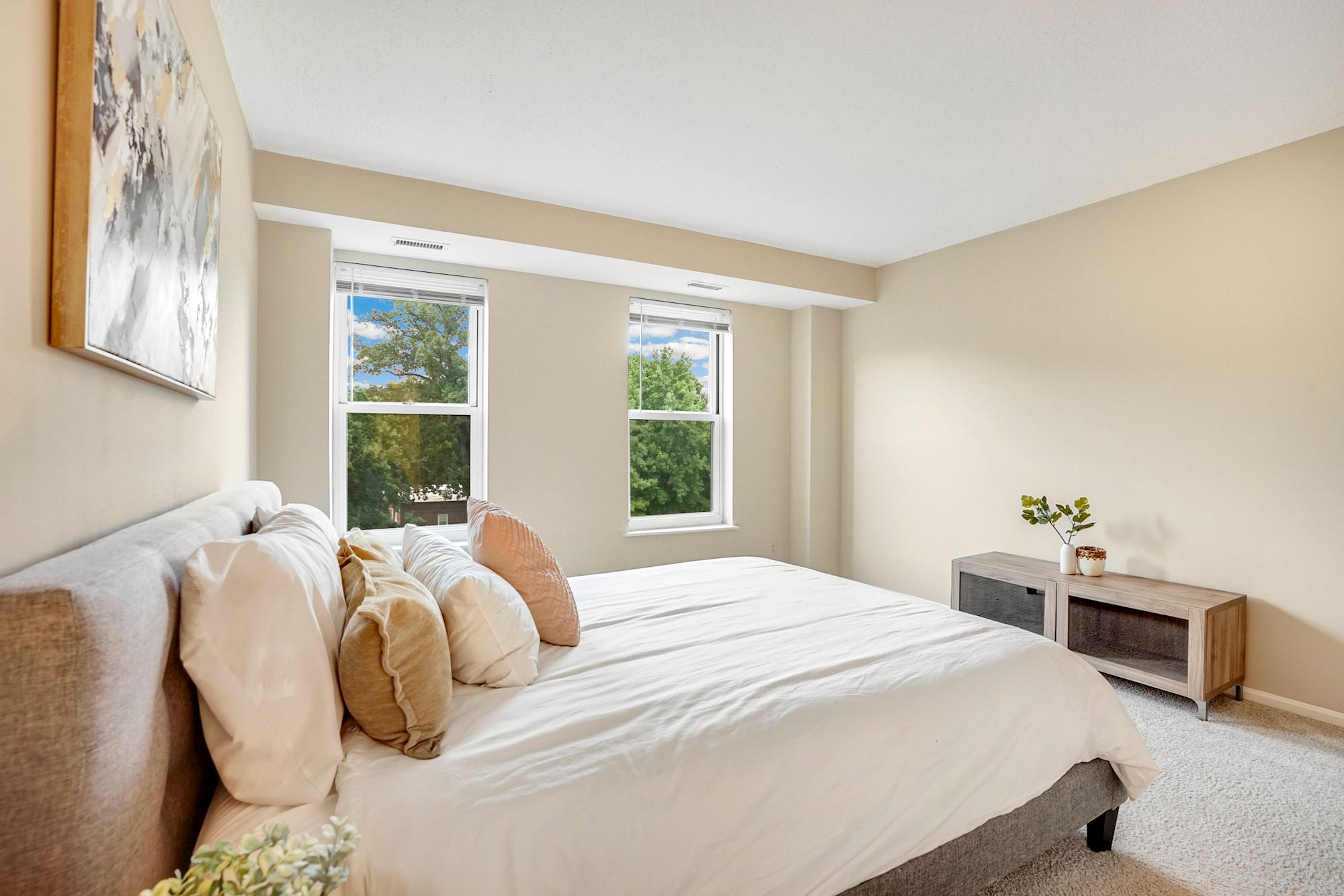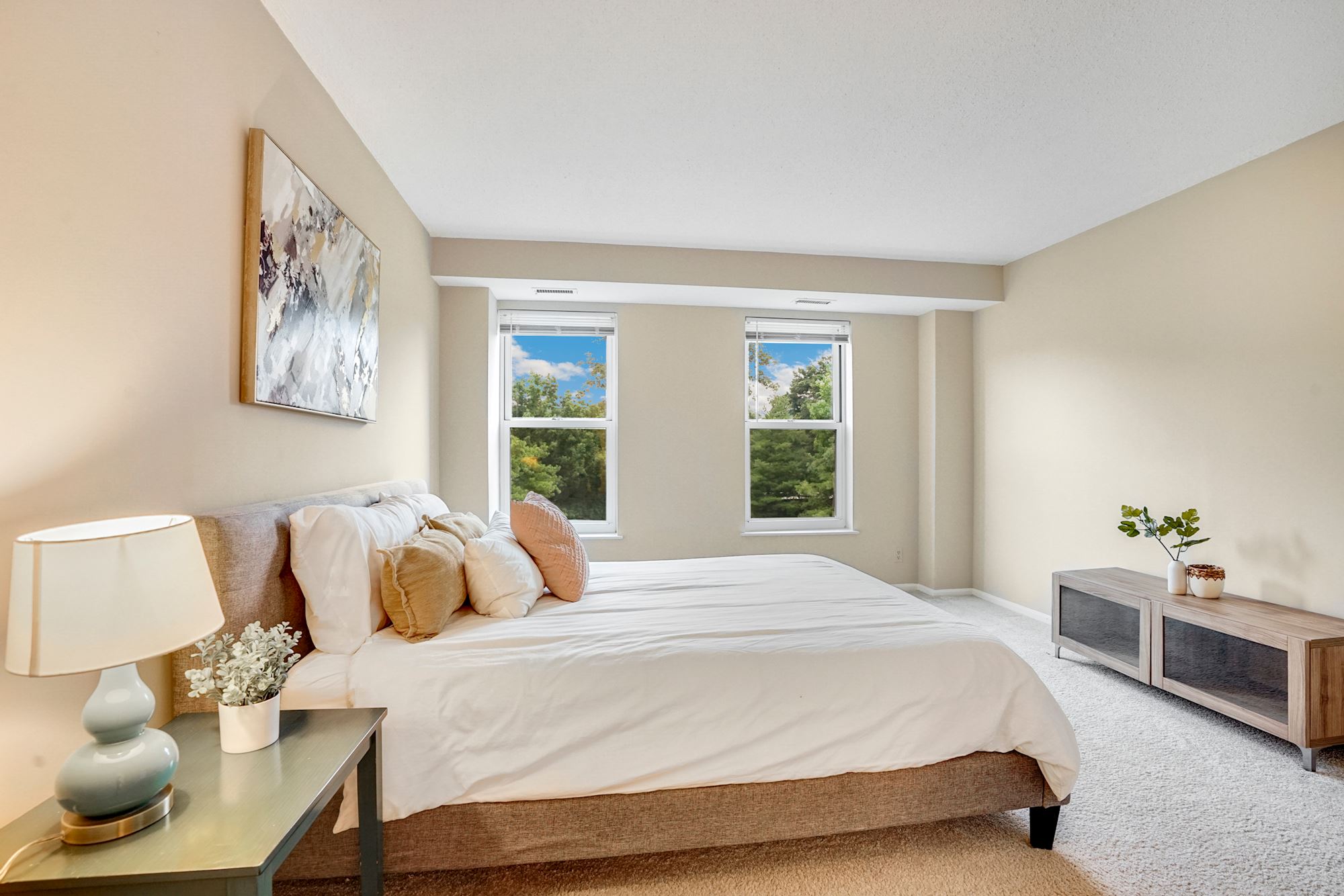 Large Owners Suite can fit a king bed comfortably, has a walk-in closet, 2nd closet, & en suite bath. The Owners bath was beautifully renovated in 2018 to have a large glass enclosed stand-up shower, dual sink modern vanity w/ soft close cabinets, & new tile floors. The second bedroom is a true size room and can fit a queen bed comfortably (pictured in the photos) with a nice size closet. Across from the 2nd bed is the 2nd full bath that was also fully renovated in 2018 to include new bath tile, floor tile, & large modern vanity.