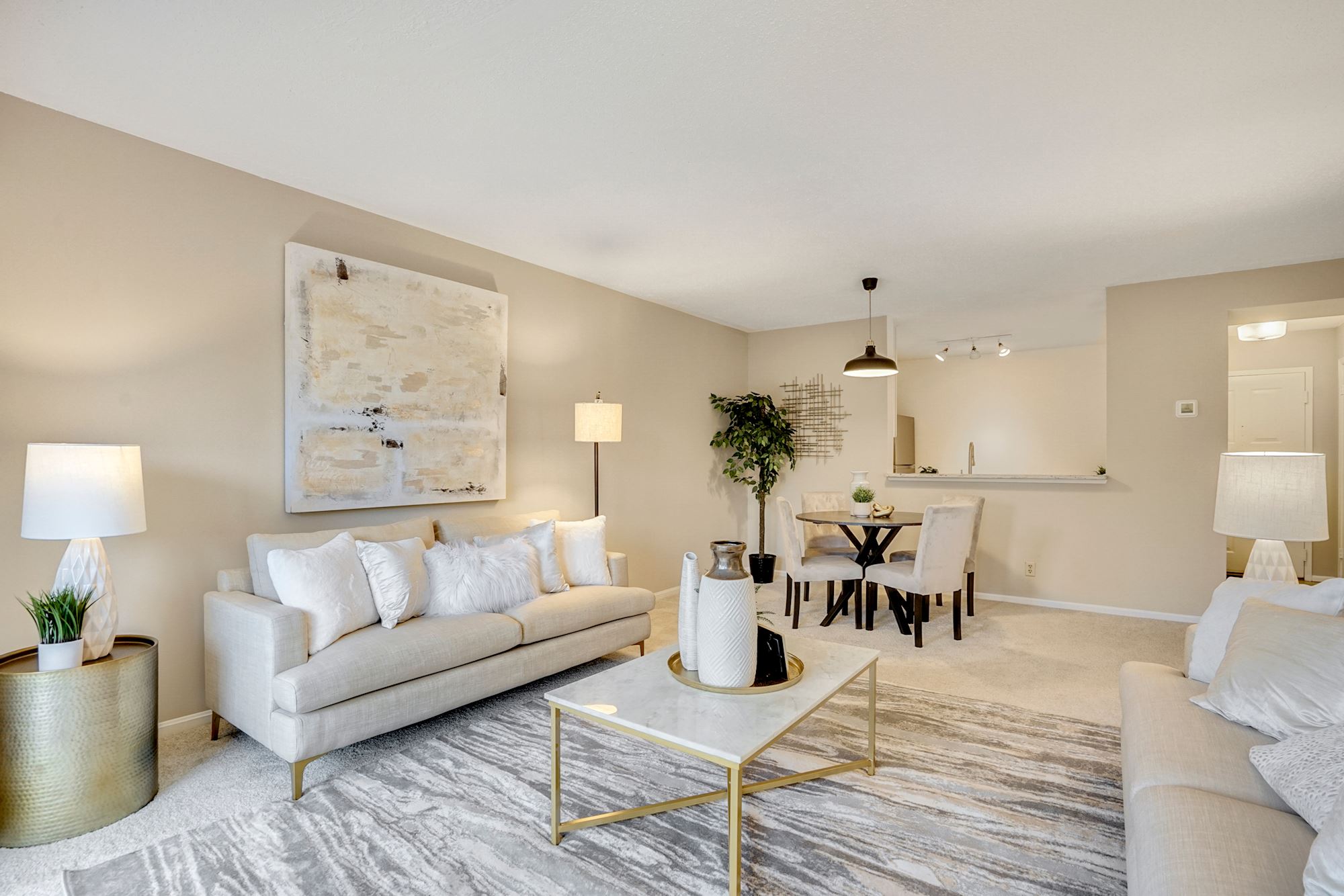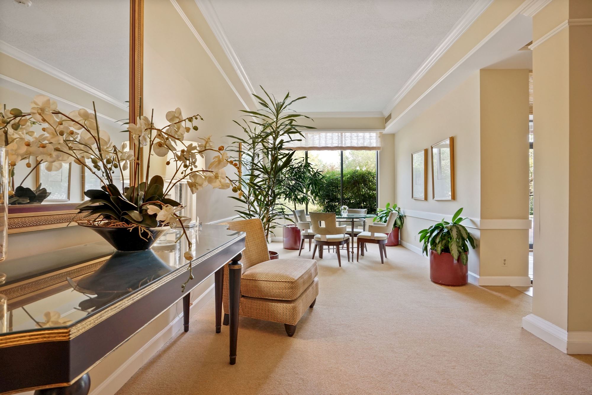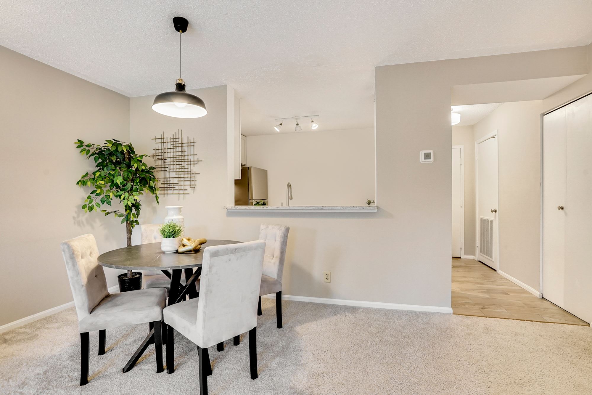 This top floor 2 bed 2 bath features quiet courtyard views, 1,000 sq ft of living space, is filled with natural light, & includes tons of modern renovations! A full kitchen renovation was done in 2018 to include beautiful grey/white granite counters, white tile backsplash, updated stainless steel appliances, modern wood–like tile floors, & updated cabinets. The kitchen has room for an island (a pre-existing island in photos conveys), has a pantry, and opens to the spacious living/dining space. Enjoy a cup of coffee or read in your own private, covered outdoor space with views of greenery & trees.