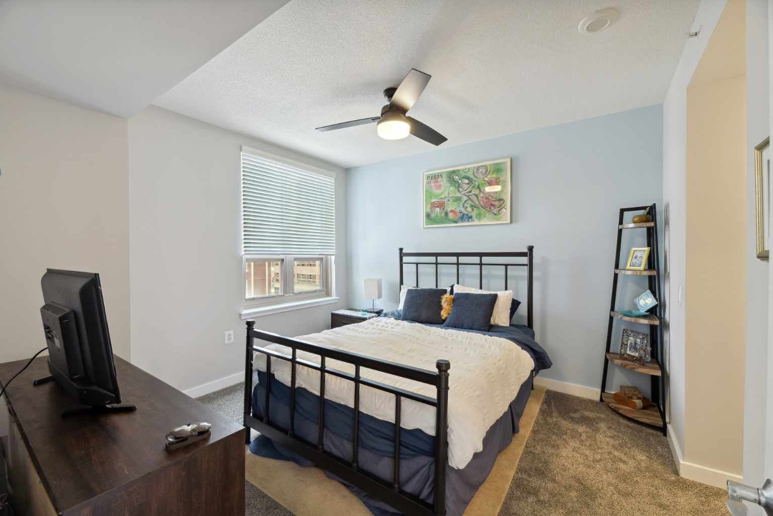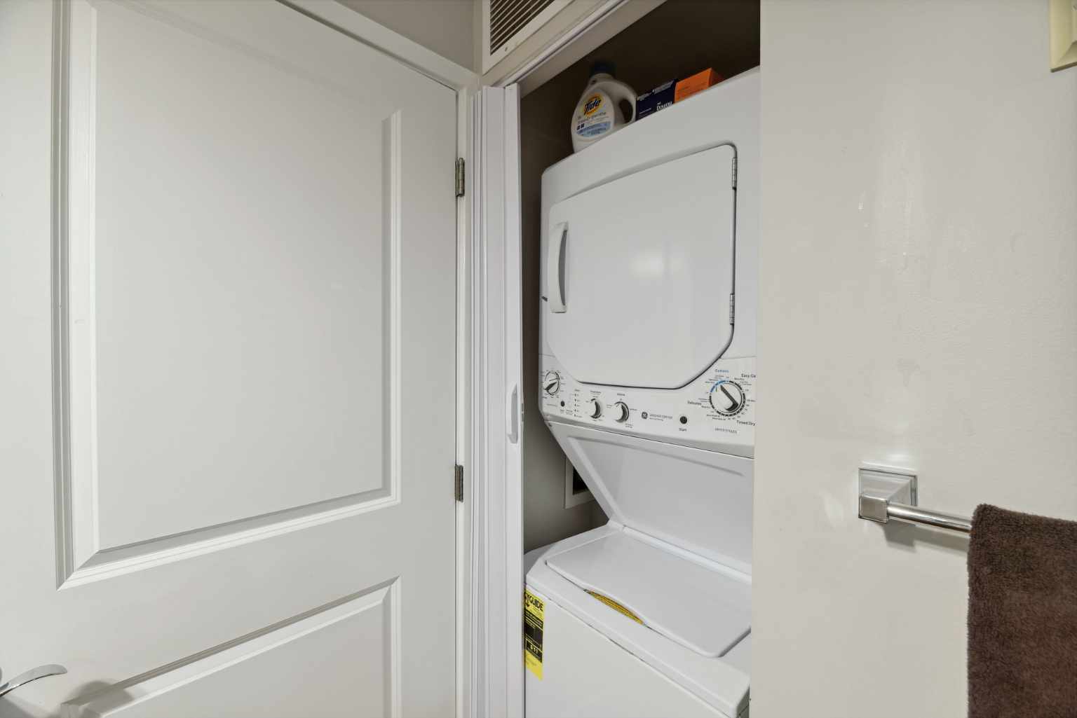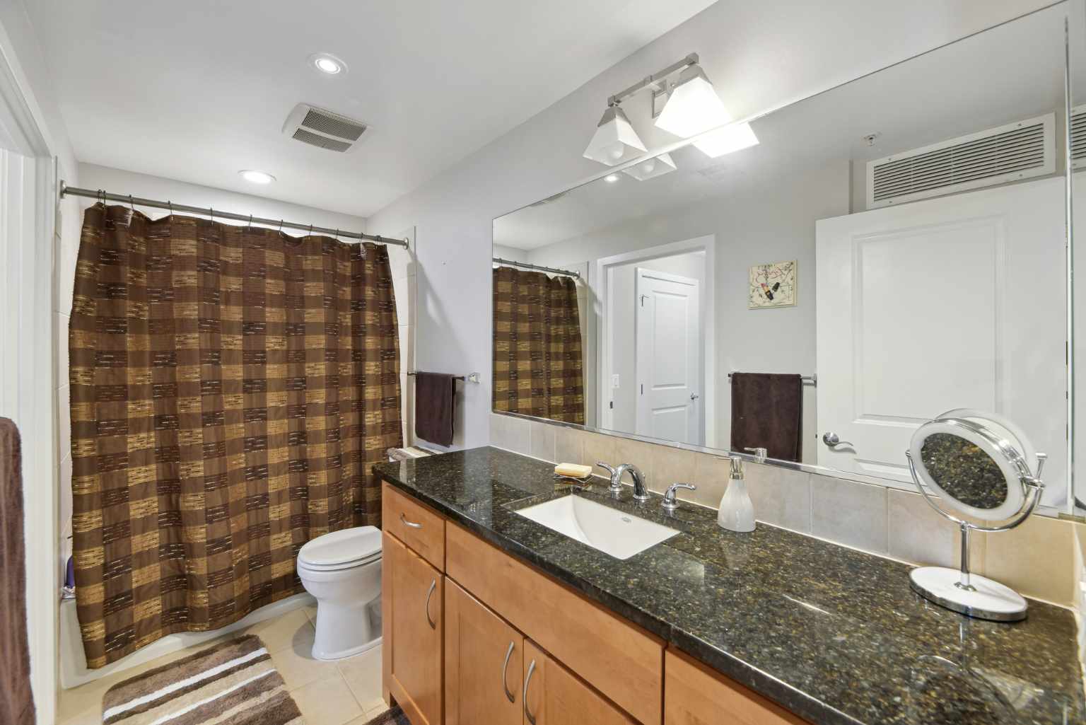 The owner’s suite has a new carpet, 2 closets, including a walk-in with built-in Elfa systems, and a dual entrance bathroom with a new granite counter vanity and a tub/shower combo. The den sits near the entrance of the condo and is perfect for a home office.