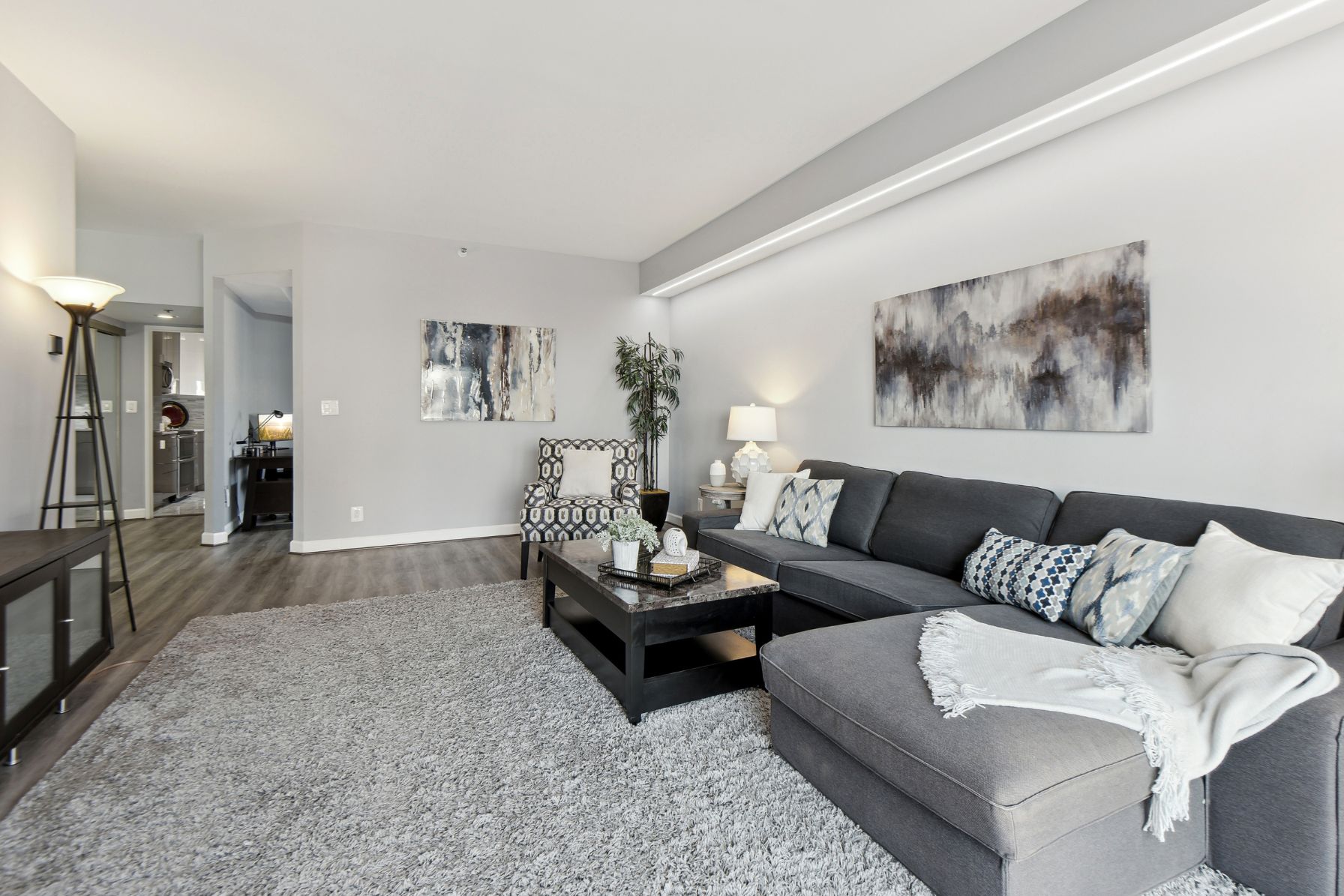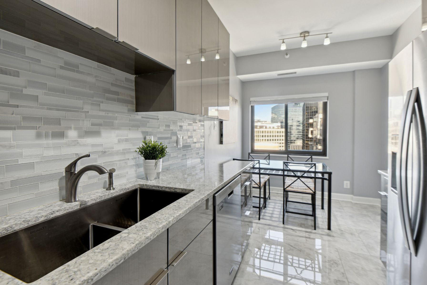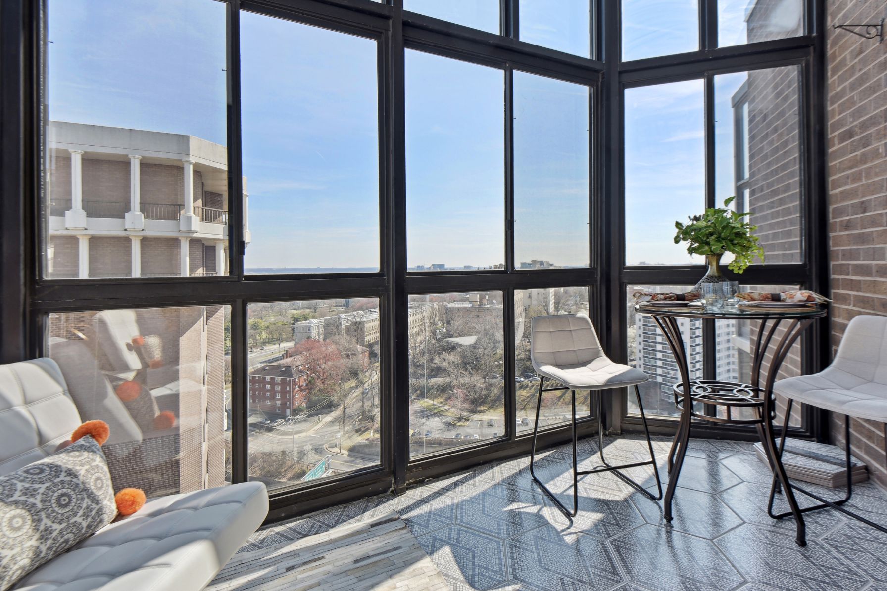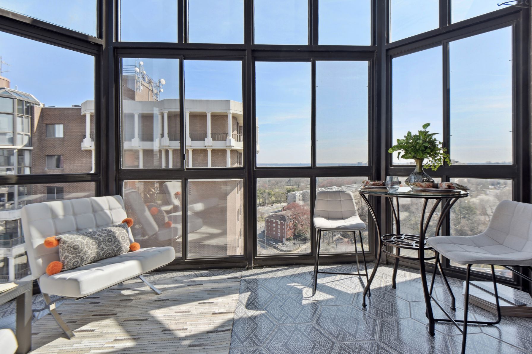 This stunning top floor 2 bedroom, 2 bathroom condo features 1,430 square feet of luxurious living space and has over $100k worth of upgrades and improvements throughout the property. The moment you enter the condo, you’ll be greeted by a welcoming foyer area that features imported tile flooring all the way from Italy. The spacious living room receives abundant natural light from the eastern exposure. Luxury vinyl plank flooring is found throughout the living area. The sunroom connected to the living room offers a great space to relax and take in the views of the Potomac River.