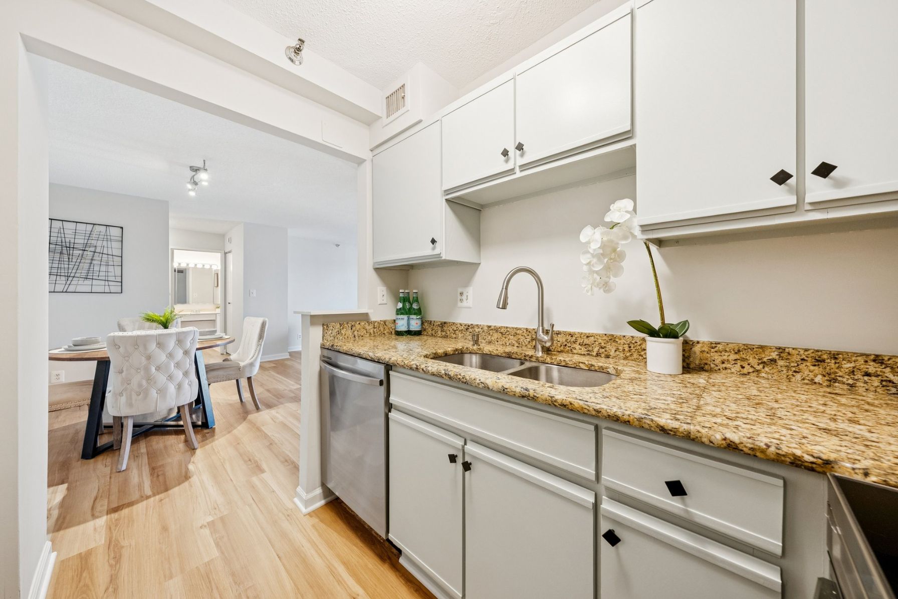 – Freshly Painted Cabinets & Sleek Black Hardware