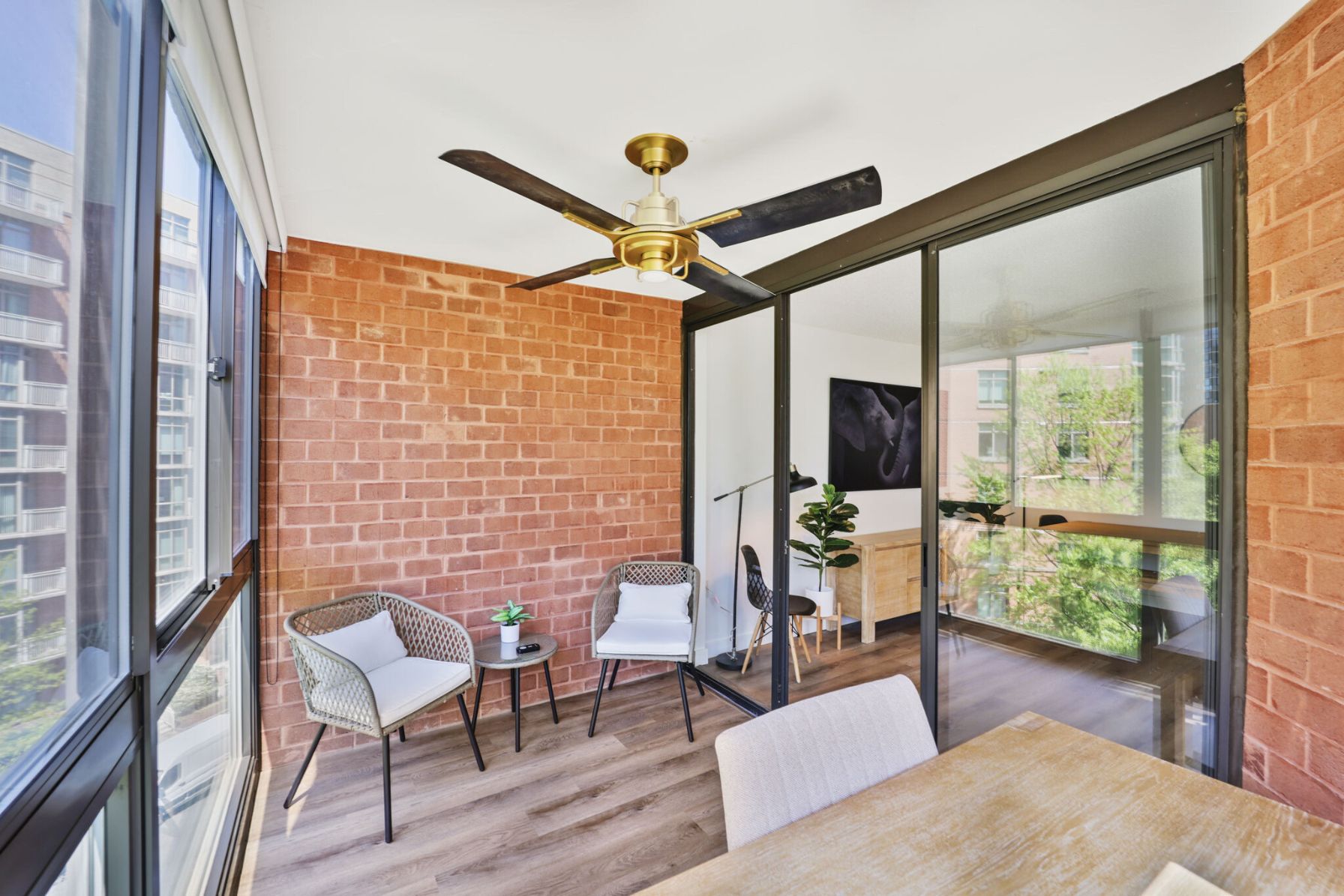 The family room impresses with its designer touches, including a Samsung Frame TV, chic Pottery Barn furnishings, and sliding glass doors that lead to a bright sunroom. Here, you’ll enjoy tranquil tree-top views over Ballston and over 770 square feet of total living space.