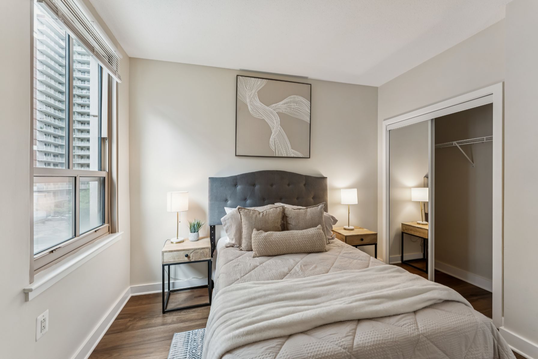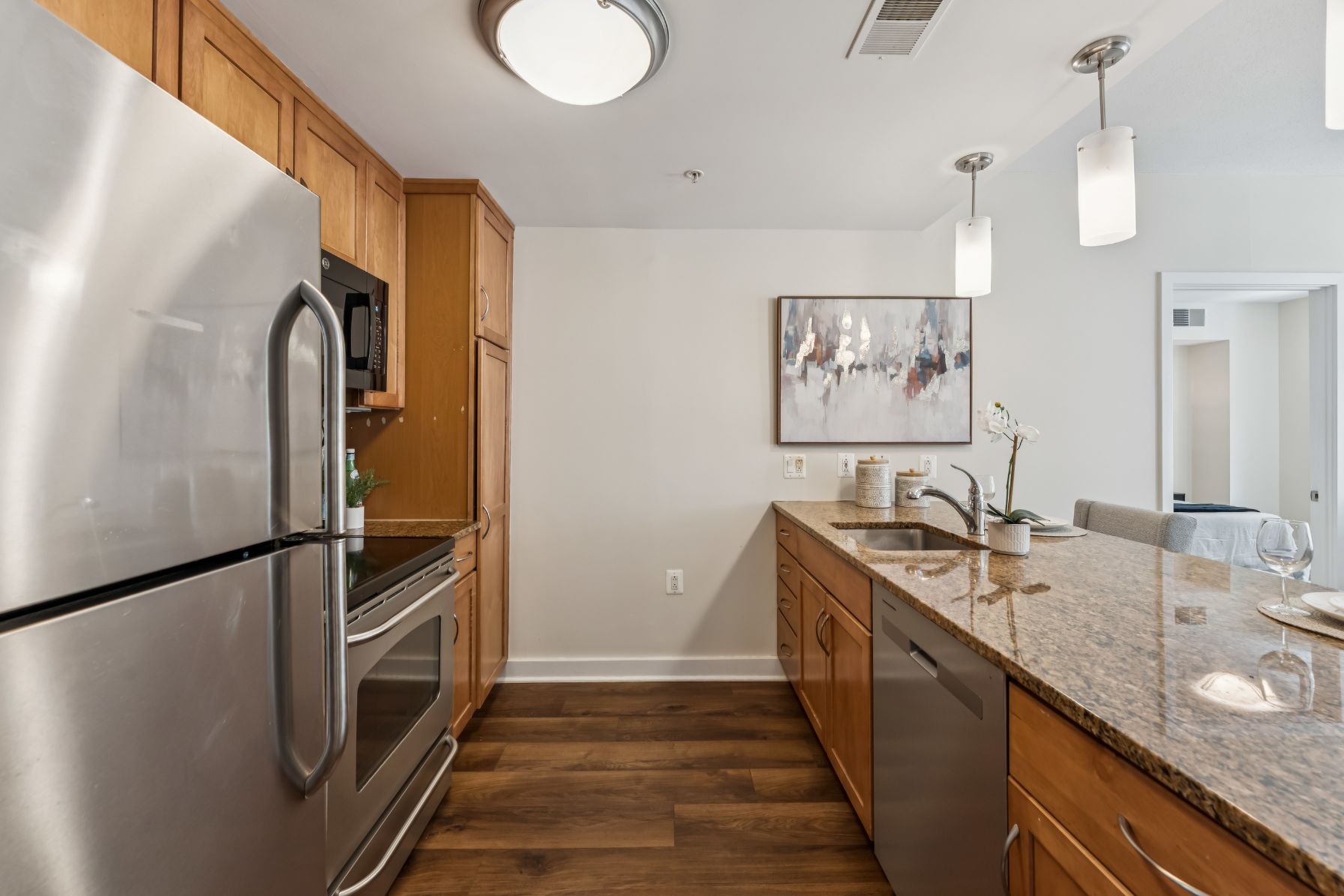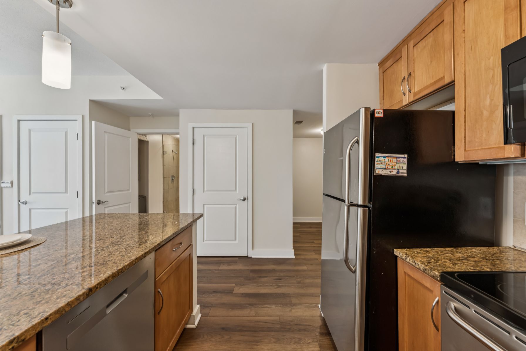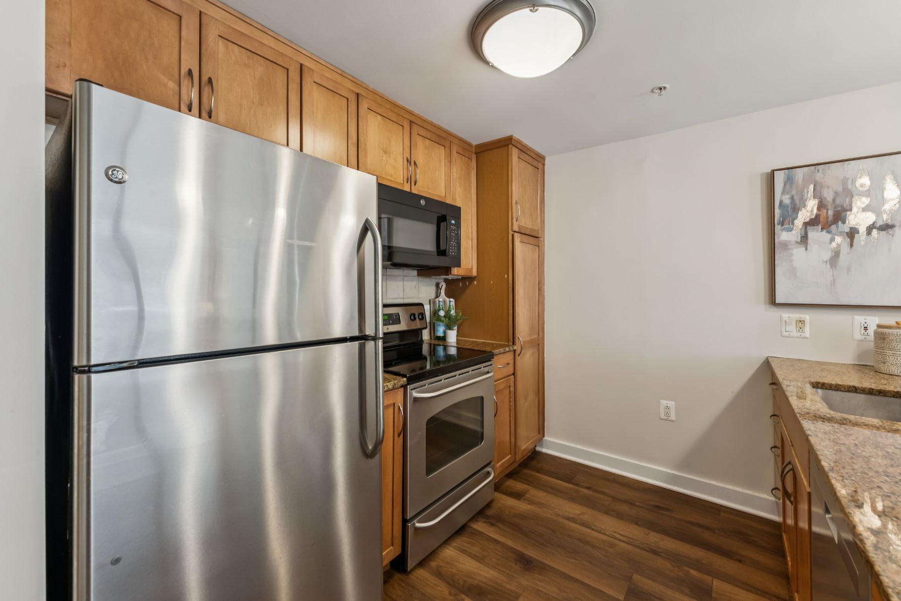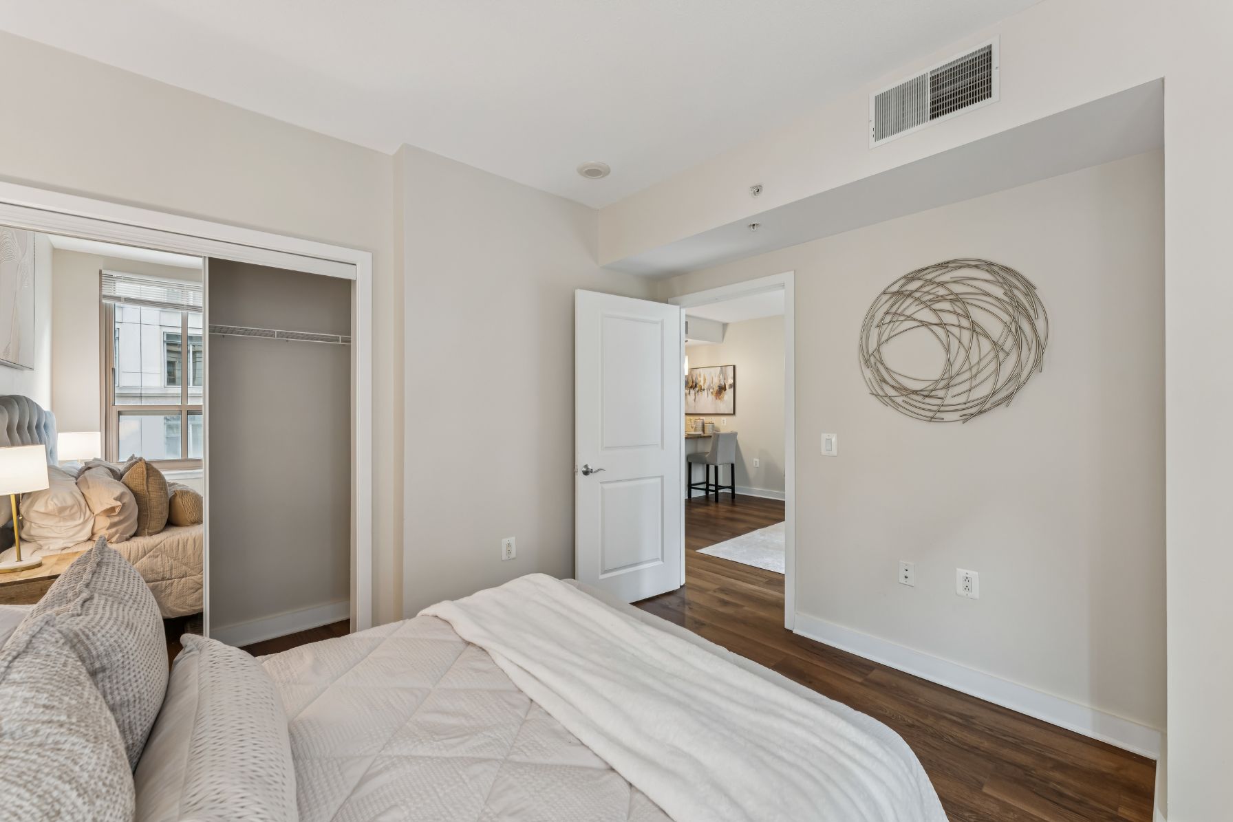Live in Ballston’s premier building, the Residences at Liberty Center. This sought-after Prescott model features 2 bedrooms plus a den with an open floor plan and LVP floors throughout. The kitchen is outfitted with granite countertops, stainless steel appliances, and pendant lighting over a breakfast bar that opens to the spacious living area. Floor-to-ceiling sliding glass doors lead to your private balcony on the quiet side of the building.