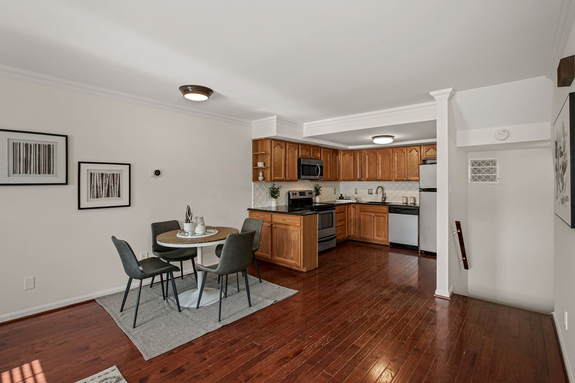 Nice size Owners Suite has an en suite bath. Both full baths on this level have newly glazed shower surrounds. The lower level has new foyer tile and is home to the 1 car garage that can also be used as a perfect home gym with 3rd full bath attached. This townhome could be an amazing first-time home or even a great future rental property being located in prime Ballston! Enjoy the super low HOA fee of only $40 per month and live steps to the metro, largest Golds Gym, tons of dining options, shopping, and more!
